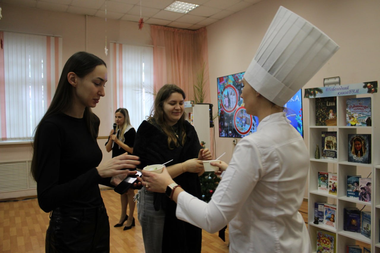 Повествование авторитетного исследователя о выдающемся отечественном рестораторе, подарившем главное украшение новогоднего стола, разогрело всеобщий аппетит. И здесь как нельзя более уместной стала дегустация вкуснейшего оливье, приготовленного профессионалами – преподавателями Курского государственного техникума технологий и сервиса Анастасией Митрошенко, Натальей Бартеневой и студентом Игорем Чубаровым.