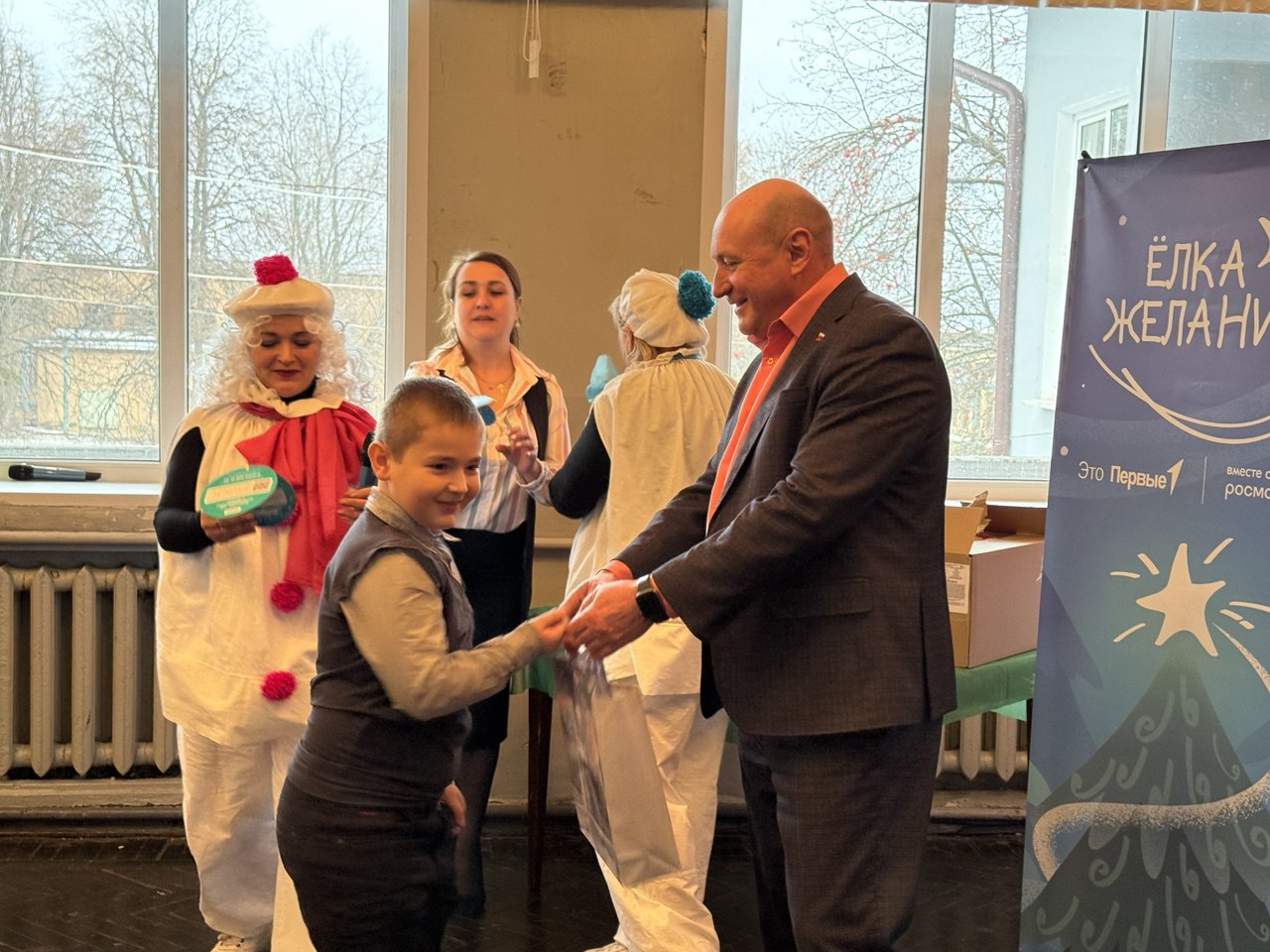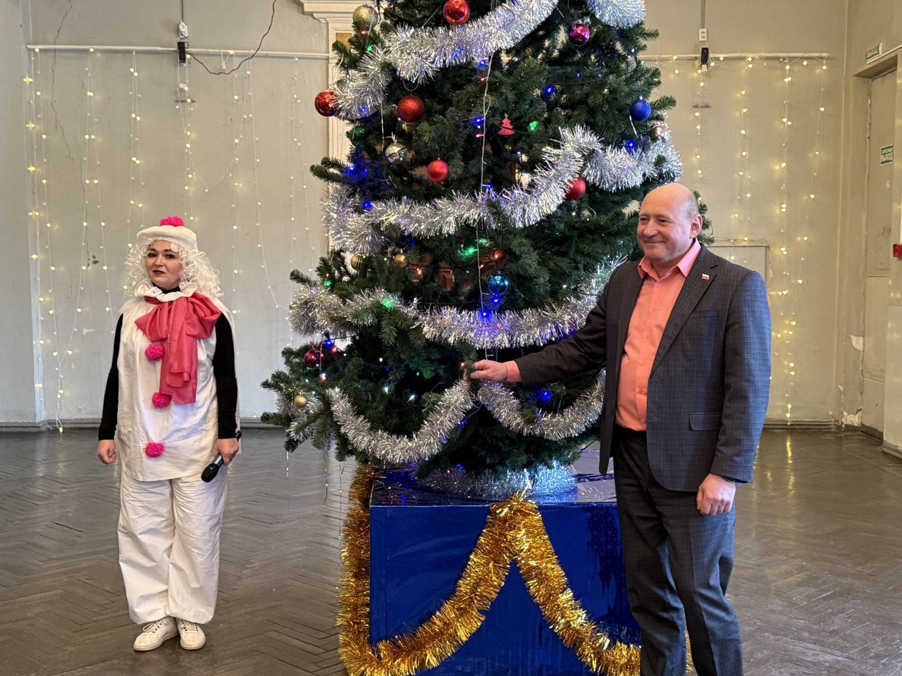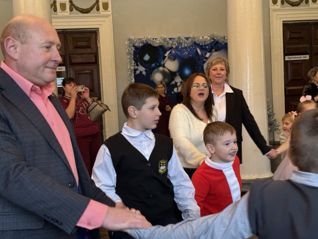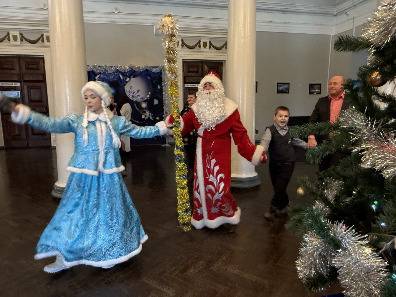 Мы не просто вручили подарки, а устроили целое новогоднее представление. Хороводы вокруг елки, игры, танцы и другие развлечения.