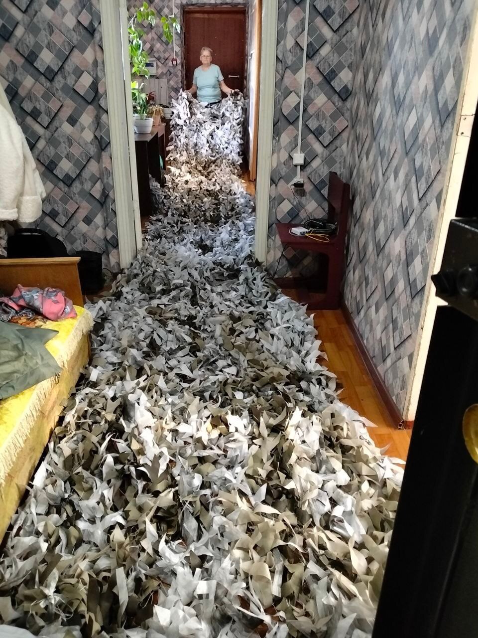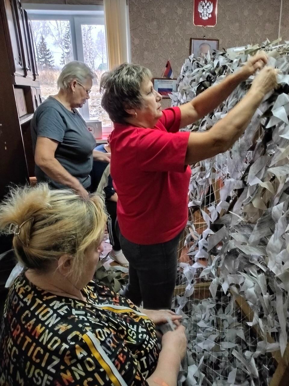 Плетение маскировочных сетей — это трудоемкий процесс, требующий внимания к деталям. Волонтеры стараются сделать сети максимально эффективными для маскировки военной техники и инженерных сооружений. Более 300 масксетей изготовлино этими замечательными женщинами.
