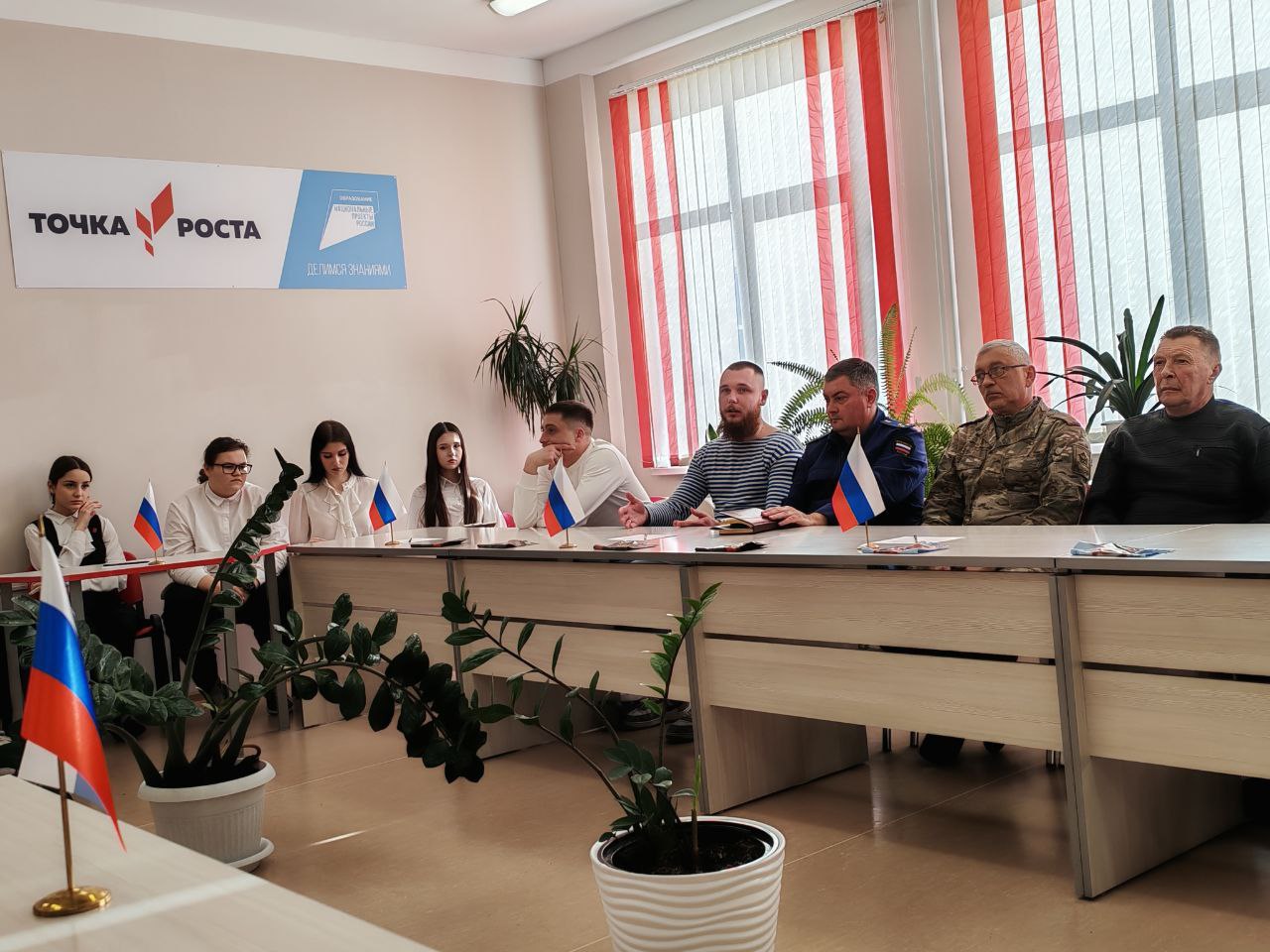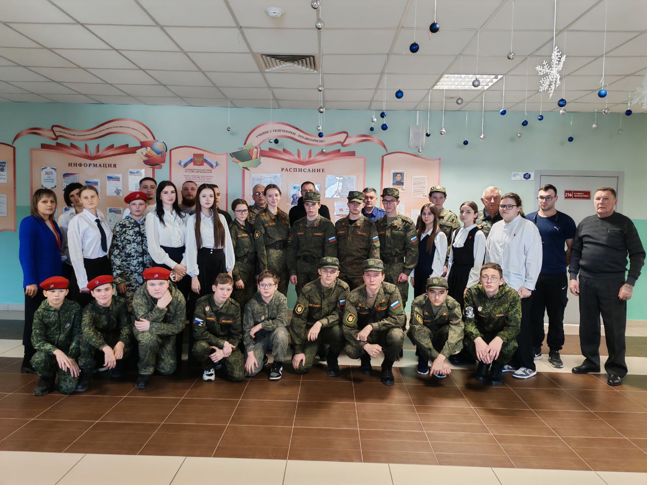Для гостей школьники подготовили экскурсию по школе, рассказали о военно-патриотической работе, которая проводится в образовательной организации. Участники специальной военной операции приняли участие в Уроке Мужества, поделились с юнармейцами и активистами Движения Первых своими эмоциями, воспоминаниями. Ребята подарили гостям новогодние сувениры