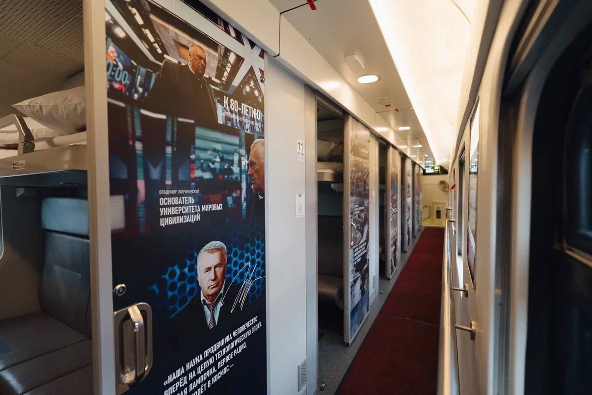 «Мы запускаем уникальный проект — брендированные поезда в честь 80-летия великого Основателя ЛДПР Владимира Жириновского. РЖД качественно, детально отнеслись к этому уникальному проекту. Люди разных возрастов, профессий, мест жительства будут знакомиться с колоссальным наследием Владимира Жириновского», — сказал Лидер ЛДПР Леонид Слуцкий.