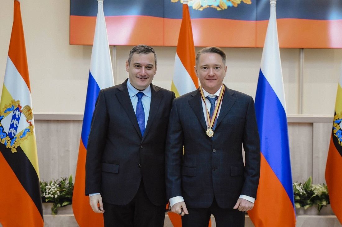 Губернатор Курской области Александр Хинштейн вручил знаковую награду «Орден Почёта» генеральному директору ООО «УК «Вагонмаш» Александру Андрееву.