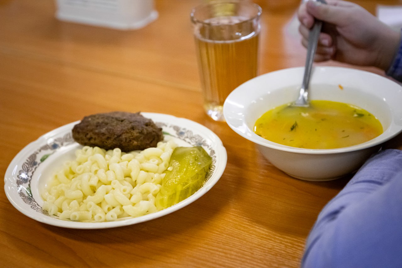 Сегодня в меню — гороховый суп, макароны с котлетой и компот. Ученики сказали, что едят с удовольствием. У всех детей вкусы разные — кто-то любит гречку, кто-то пюре, кому-то слишком пересолено, но в целом дети едой довольны. Первоклассница Аня призналась, что ей нравится обедать в школьной столовой, особенно она любит пельмени.