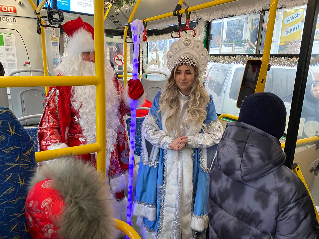 Главные волшебники - Дед Мороз и Снегурочка - приехали на мероприятие в украшенном «Волгабасе». Дети заглянули в кабину, узнали правила поведения в общественном транспорте, а самые любознательные даже попробовали себя в роли водителей - нажали на клаксон и посидели за рулём.