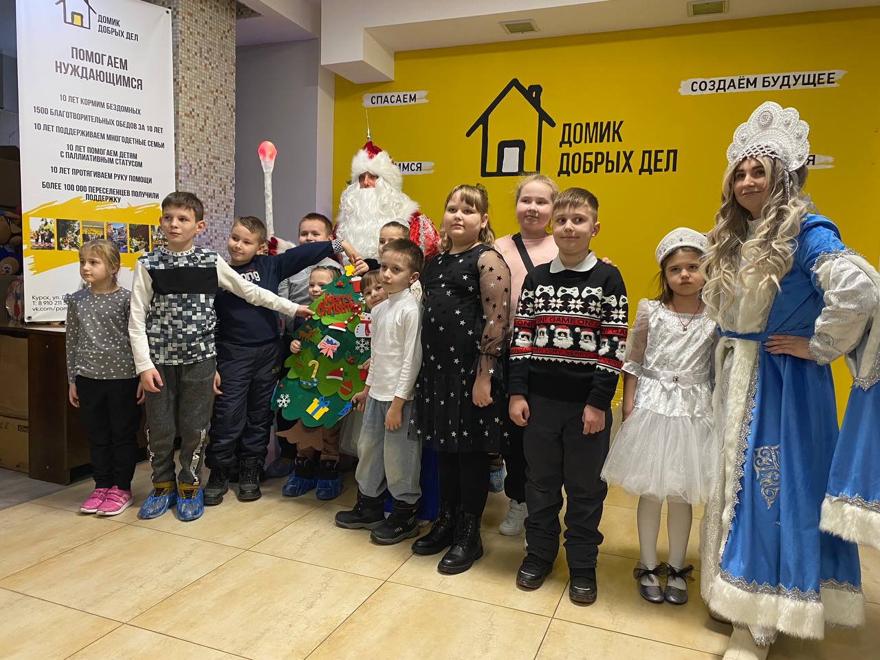 В Курске прошла новогодняя акция для детей, оказавшихся в трудной жизненной ситуации. Праздник устроили в «Домике Добрых Дел» при поддержке волонтёров, курского филиала НТА и Министерства транспорта региона.