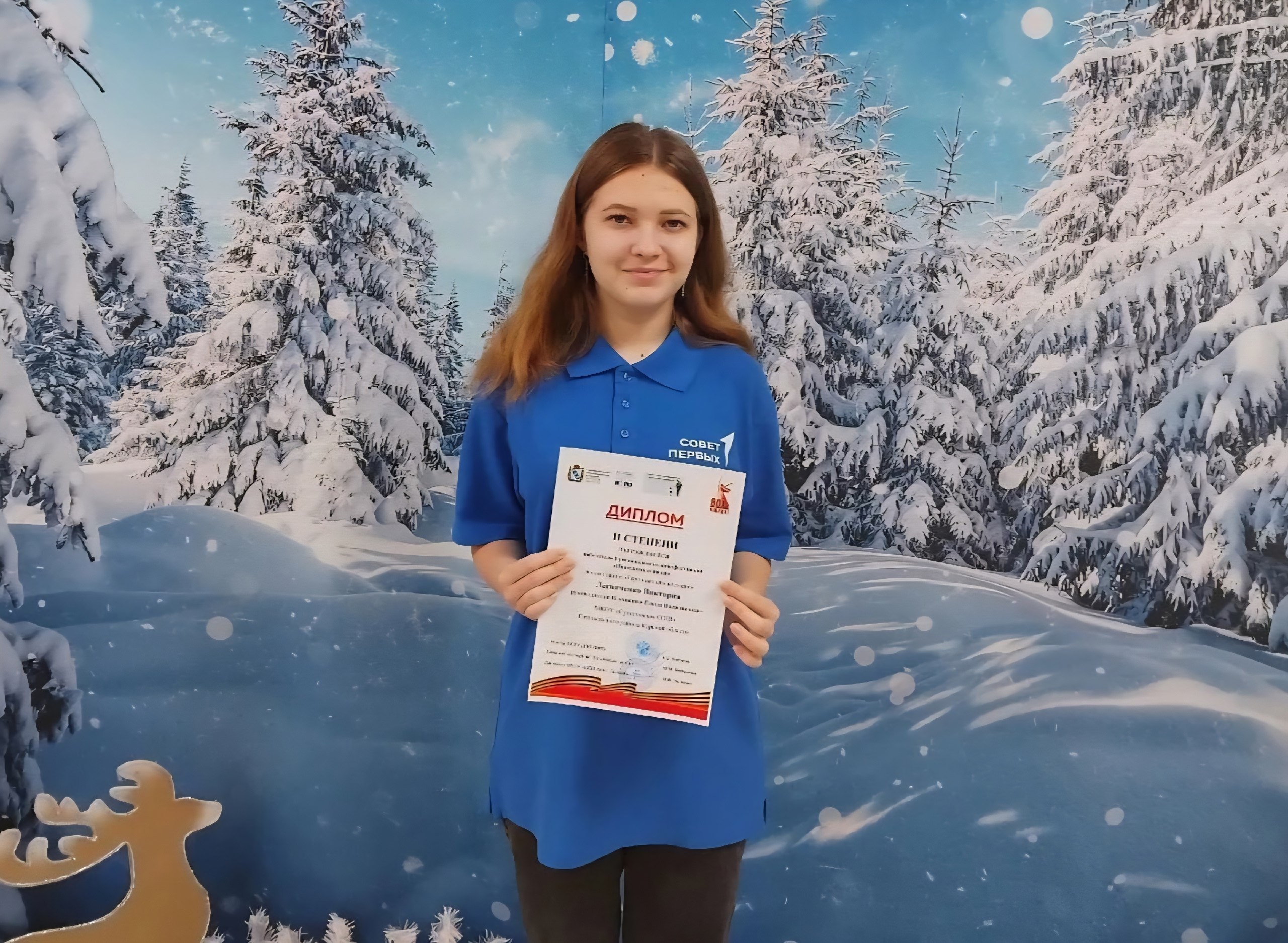Виктория, вместе с руководителем Еленой Васильевной Площенко, подготовили на конкурс видеоролик "Герои нашего времени", в котором рассказали о своих земляках, участниках СВО.
