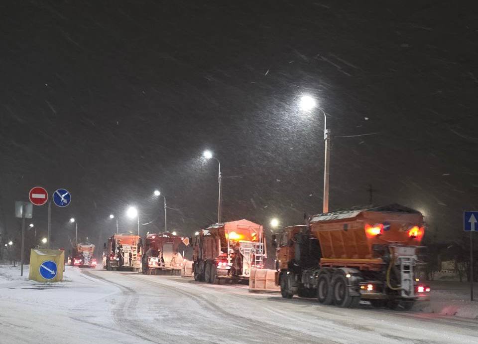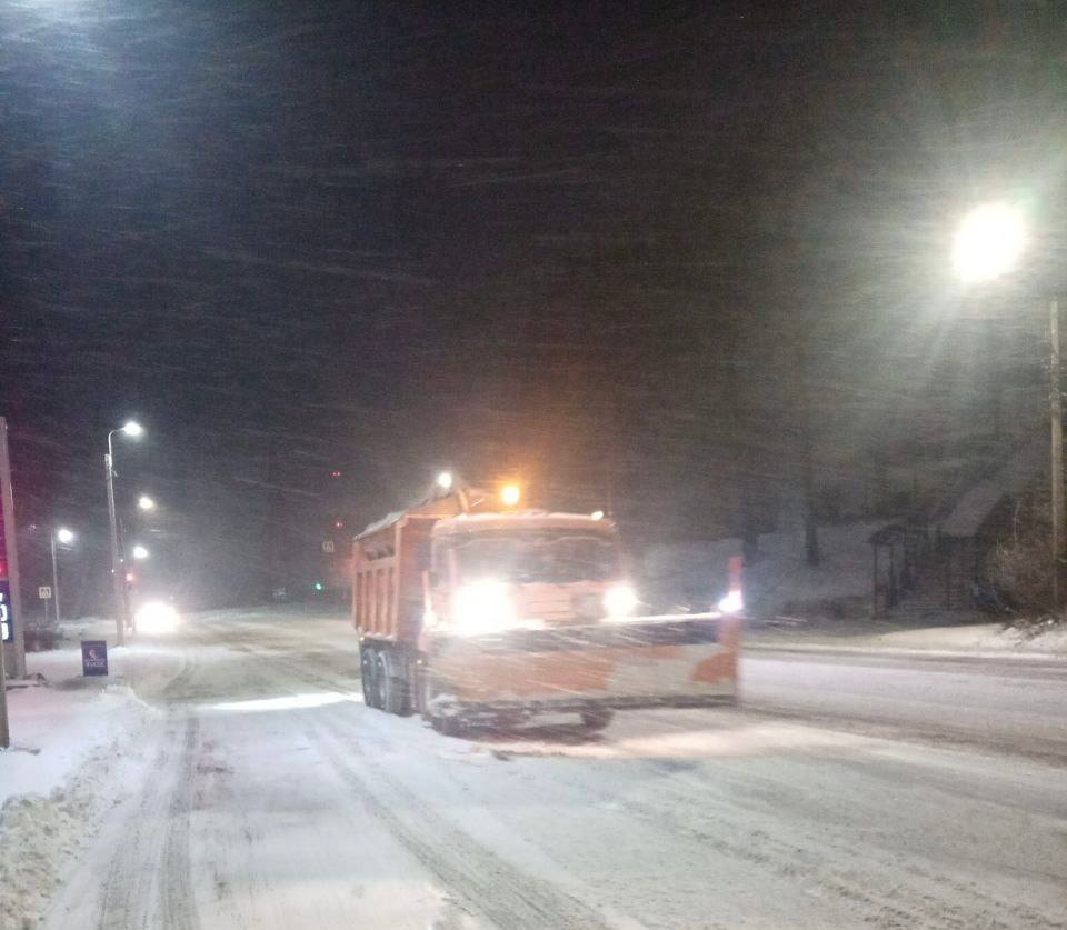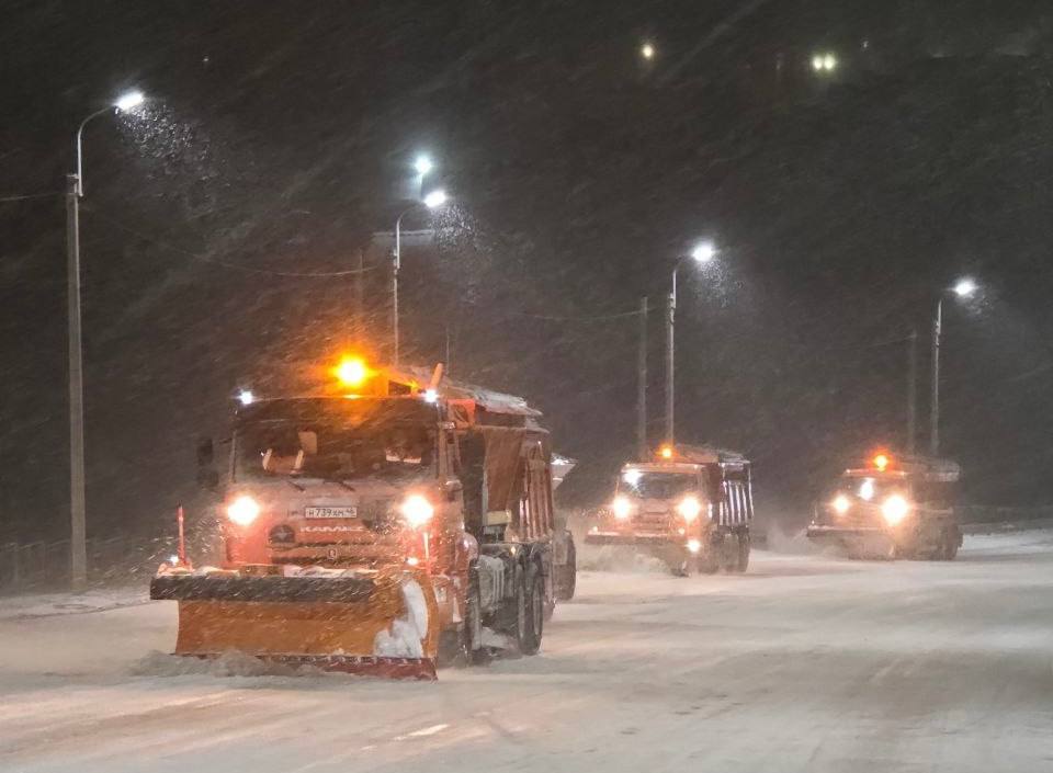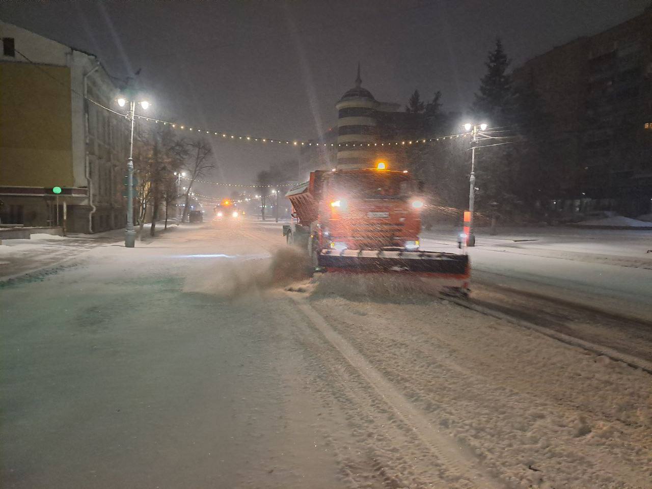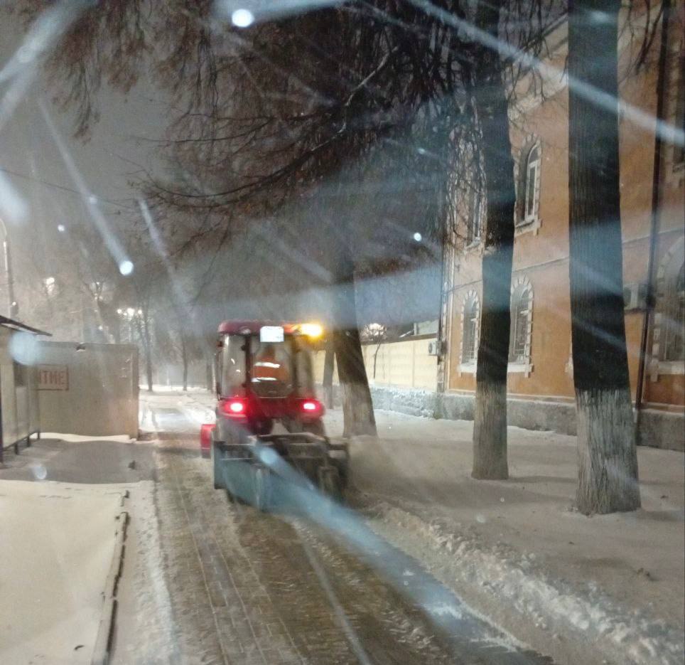 Рабочие сметали снег с проезжей части, посыпали скользкие участки песко-соляной смесью, убирали парковочные и остановочные карманы, расчищали перекрестки.