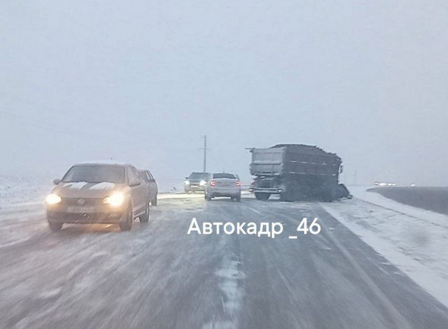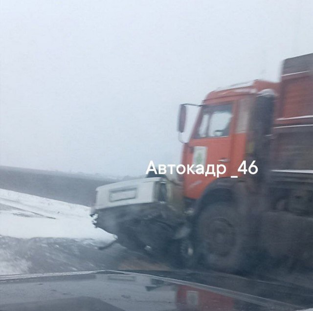 «Массовое ДТП за Волковым Ключом, очень скользко! — пишут куряне, выкладывая фото с мест в паблике «Автокадр_46».