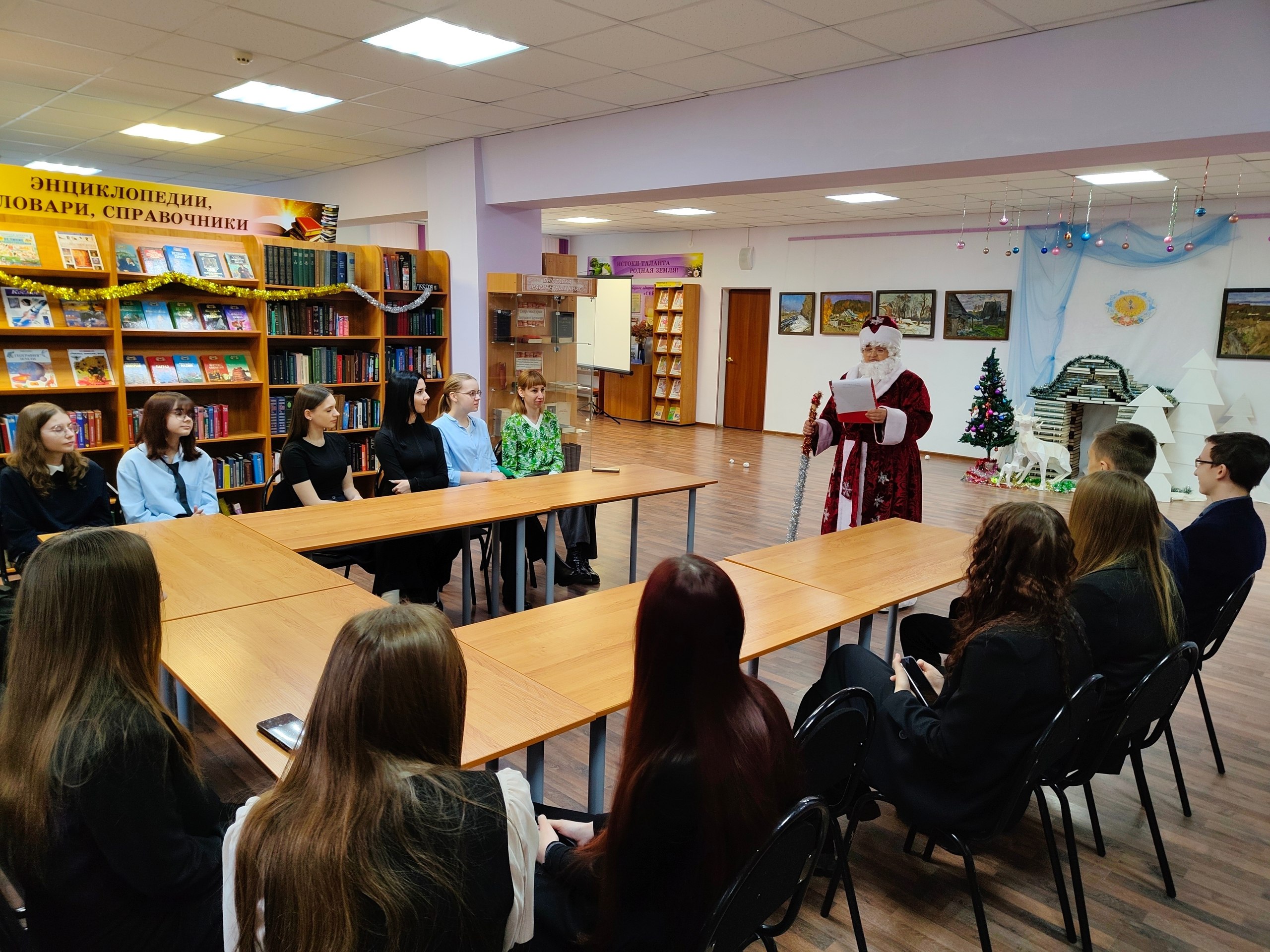 Новый год – любимейший праздник и у детей, и у взрослых. Каждый раз, слыша звон курантов, мы прислушиваемся к тому, как уходит старый год и наступает новый. Празднование Нового года ассоциируется у всех нас только с хорошими и радостными моментами. В преддверии праздника в читальном зале МКУК "Межпоселенческая библиотека" для обучающихся 9 «В» класса, классный руководитель Анпилогова Е.Г. состоялась новогодняя встреча «Весело и дружно встретим Новый год». Ведущие познакомили ребят с историей возникновения самого волшебного праздника, многообразием новогодних традиций и обычаев разных стран. Присутствующие участвовали в конкурсах, играх :«Кулинарный эрудит», «Зимние забавы», ребята отгадывали загадки, отвечали на вопросы интеллектуальной викторины на «Гурманы». Все остались довольны праздником и ушли в хорошем настроении.