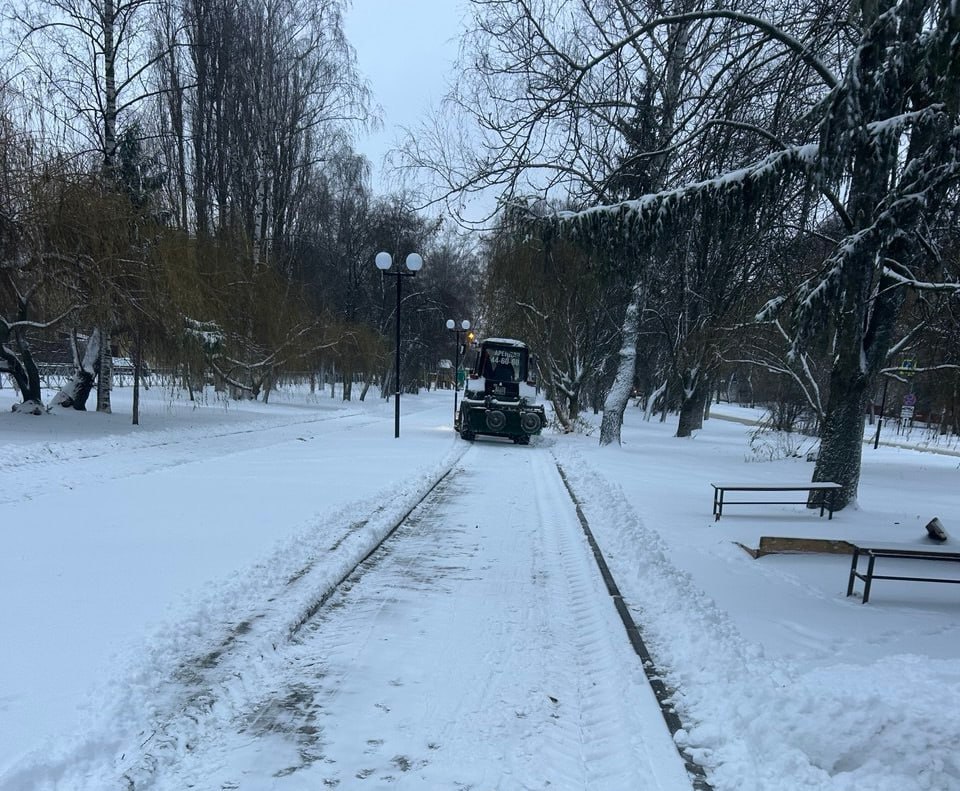 В комитете городского хозяйства сообщили, что бригады подрядчика расчищают парки, скверы и площадки от снега, обрабатывают их от наледи.