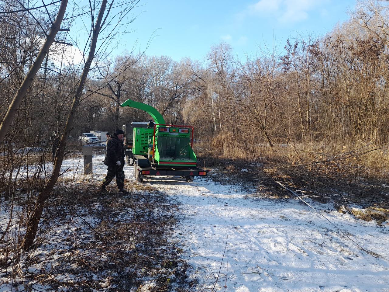 Специалисты убирают поросль и древесный мусор. Как уточняется, больше всего порубочных остатков осталось от клёна американского. Собранные ветки и древесину измельчают в щепу.