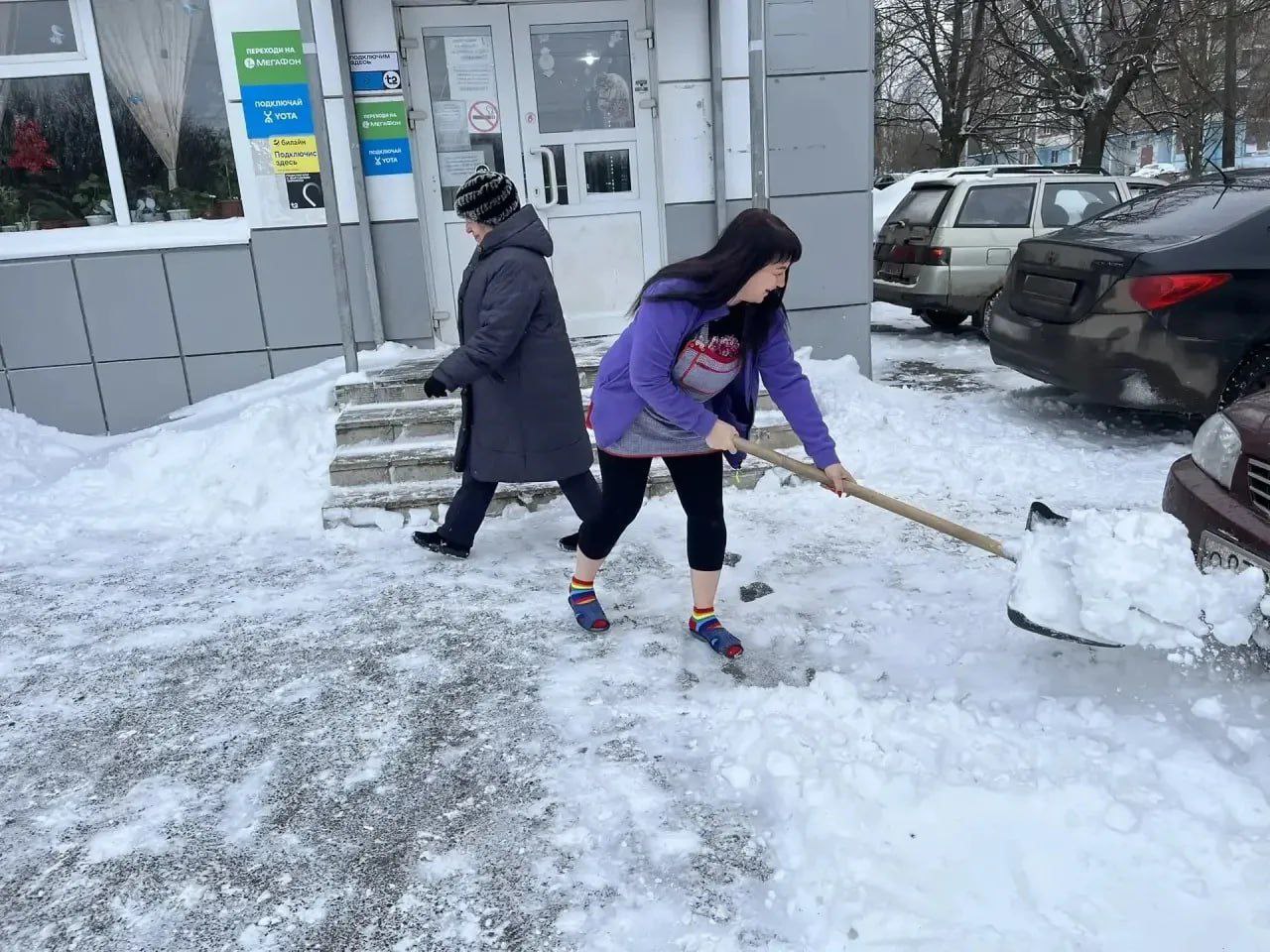Территории около торговых точек сотрудники самостоятельно очищают от последствий снегопада.