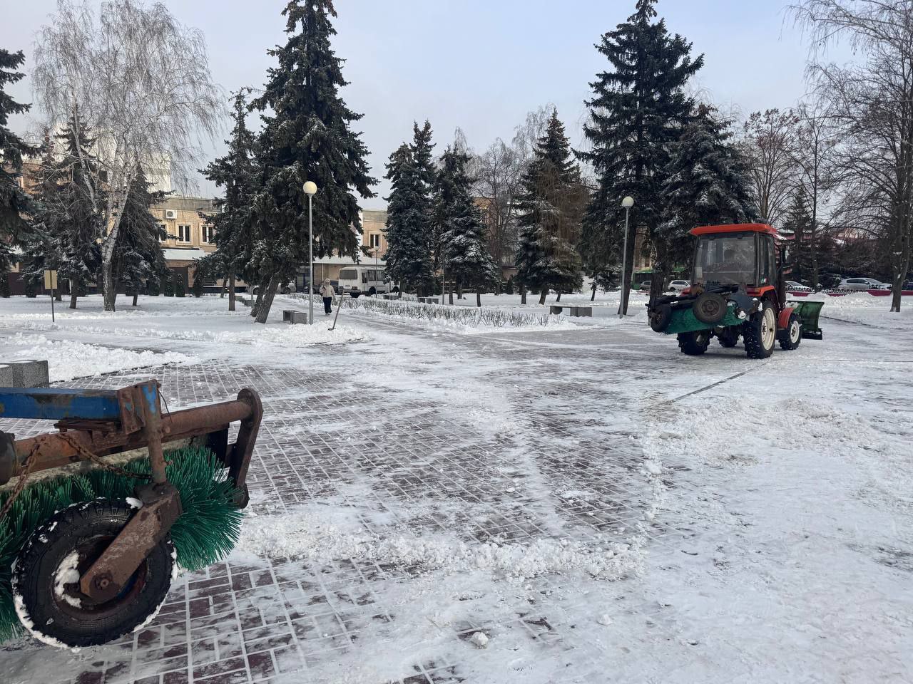 Работы по очистке проезжей части от гололеда идут во всех микрорайонах Курска