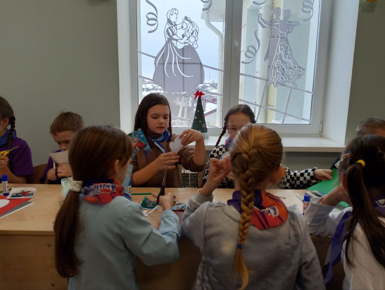 Наши Орлята и лидеры Движения Первых из всех школ района вместе с Дедом Морозом и Снегурочкой мастерили подарки для наших военнослужащих. В "новогодней коробке добра" праздничные гирлянды и открытки для солдат, талисманы и свечи- все это ребята сделали своими руками!