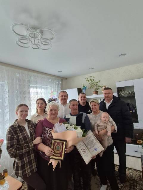Глава Октябрьского района Быковский О. А. совместно с начальником отдела ЗАГС Октябрьского района Щадных Л. А. поздравили эту прекрасную семью с таким знаменательным событием и пожелали долгих лет счастливой жизни, крепкого здоровья и продолжения теплых семейных традиций.