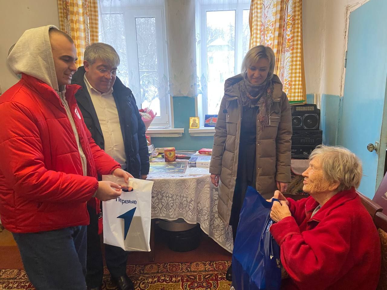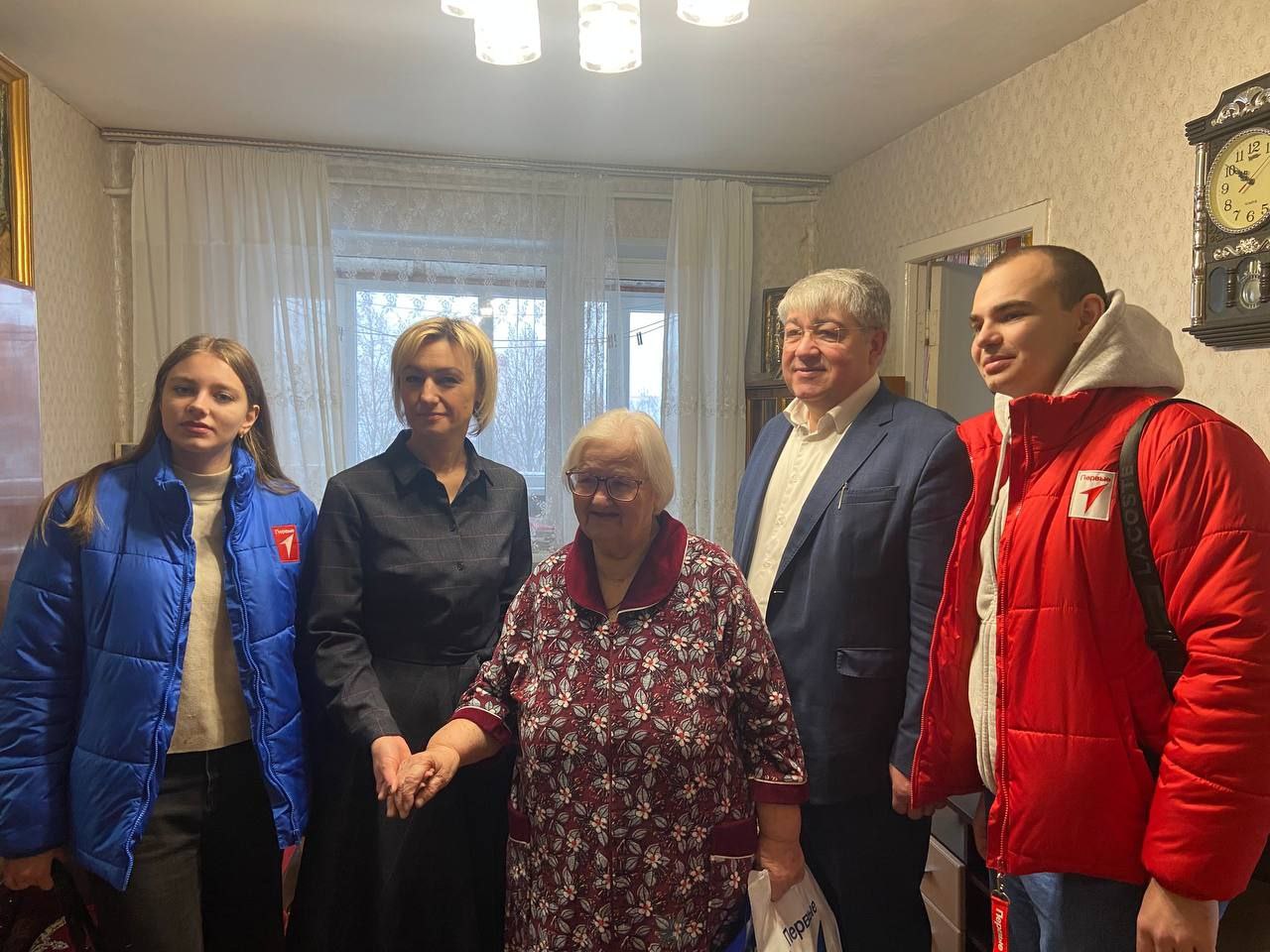 Александру Ивановичу Потапову, Нине Александровне Голубь, Алексею Петровичу Кувшинову, Галине Александровне Полуяновой и Николаю Васильевичу Бугаеву постарались подарить праздничное настроение, внимание и тепло, ведь именно этого они заслуживают каждый день, а особенно в новогодние праздники. Отрадно, что в таких важных и душевных встречах участвует молодежь – ребята из «Движения Первых», которые с искренним уважением и заботой относятся к поколению Победителей.