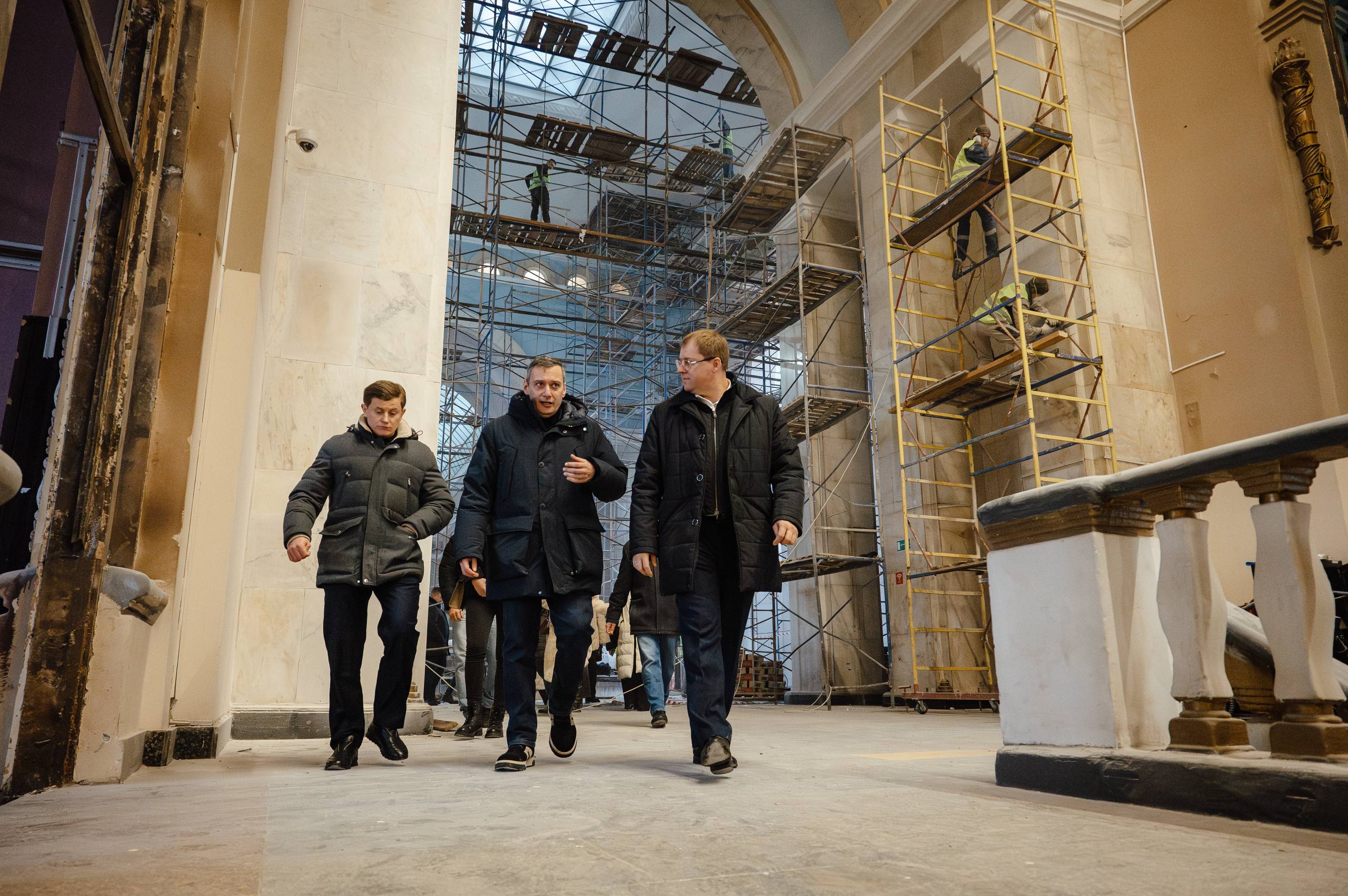 Ещё один важный проект — реконструкция железнодорожного сердца, нашего вокзала в Курске. Внутри здания активно идут реставрационные работы, залы восстанавливают буквально по крупицам: например, отобрали уже более тысячи элементов лепнины. Везде будут возвращены исторические цвета. Работают художники-реставраторы: мрамор филигранно и скурпулезно возвращают к первоначальному виду, восстанавливая рисунок там, где его «разъело» время.
