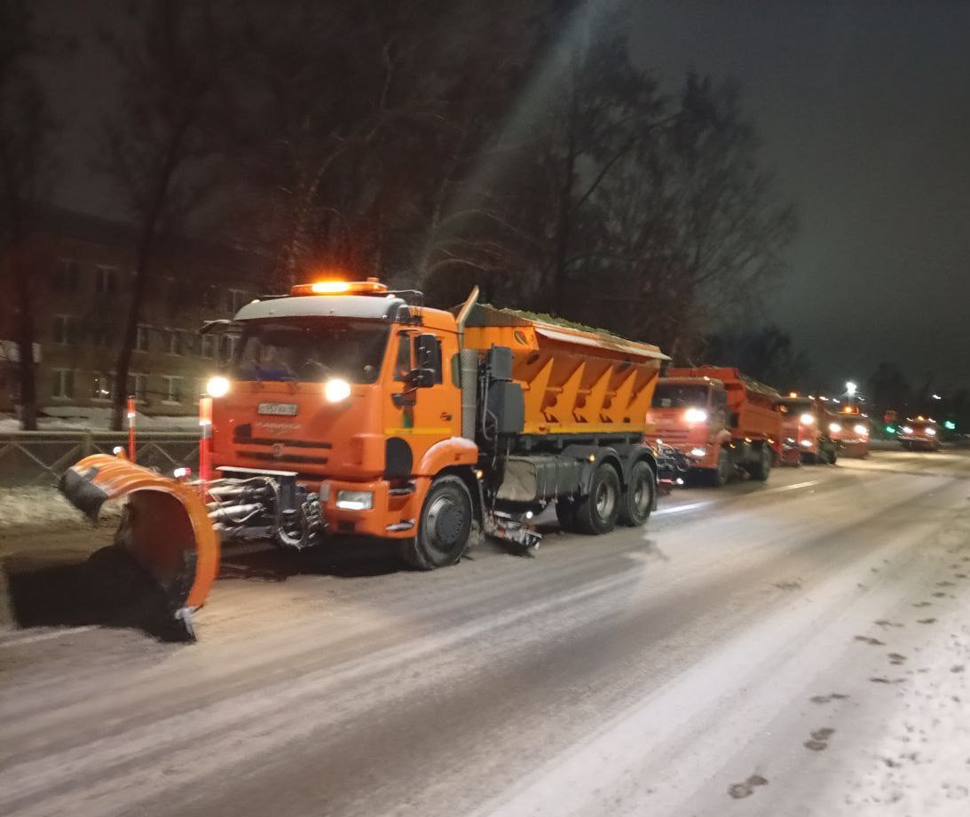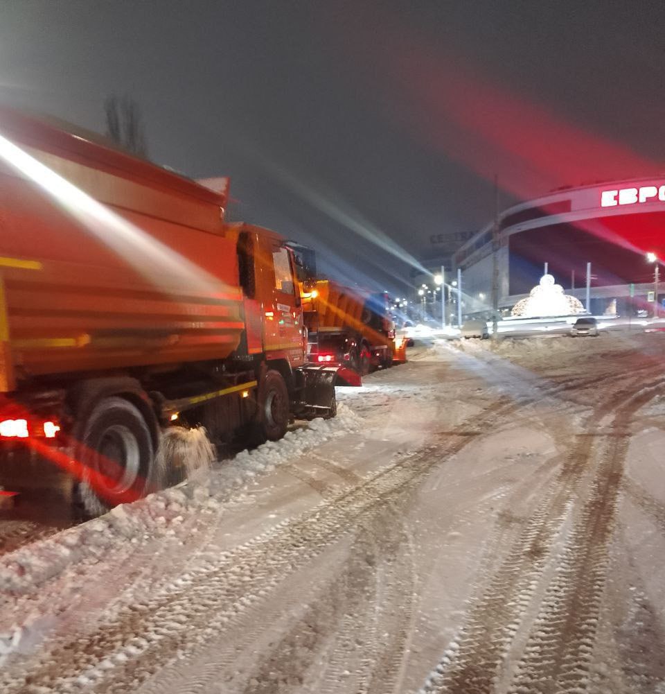 В Курске ночью не прекращалась уборка дорог. К работе привлекли 67 машин, среди которых было 35 комбинированных дорожных машин. Они очищали проезжую часть и обрабатывали ее песко-соляной смесью.