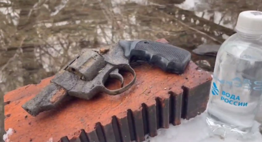 Обнаруженный ржавый револьвер передали сотрудникам правоохранительных органов.
