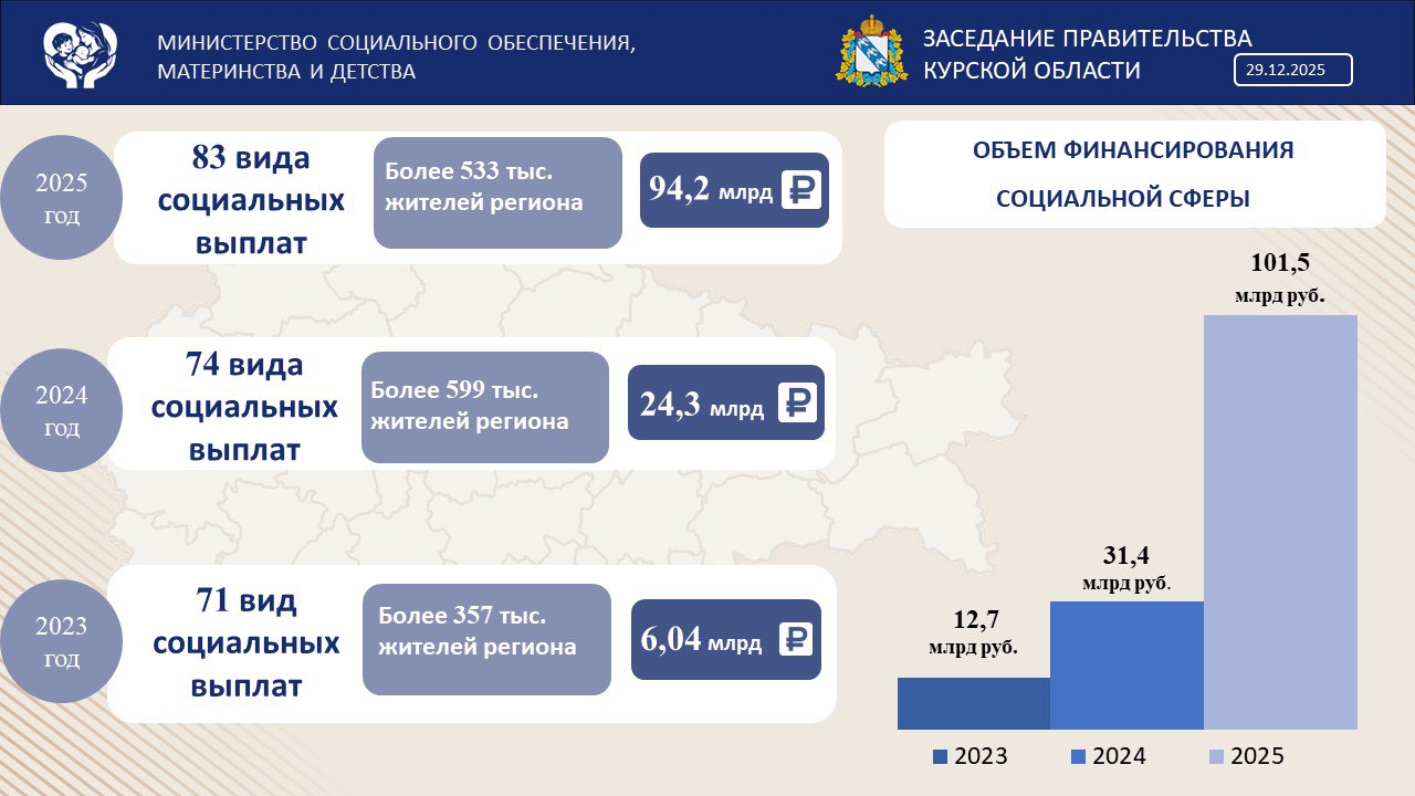 В Курской области за год объём финансирования социальной сферы вырос в 3,2 раза