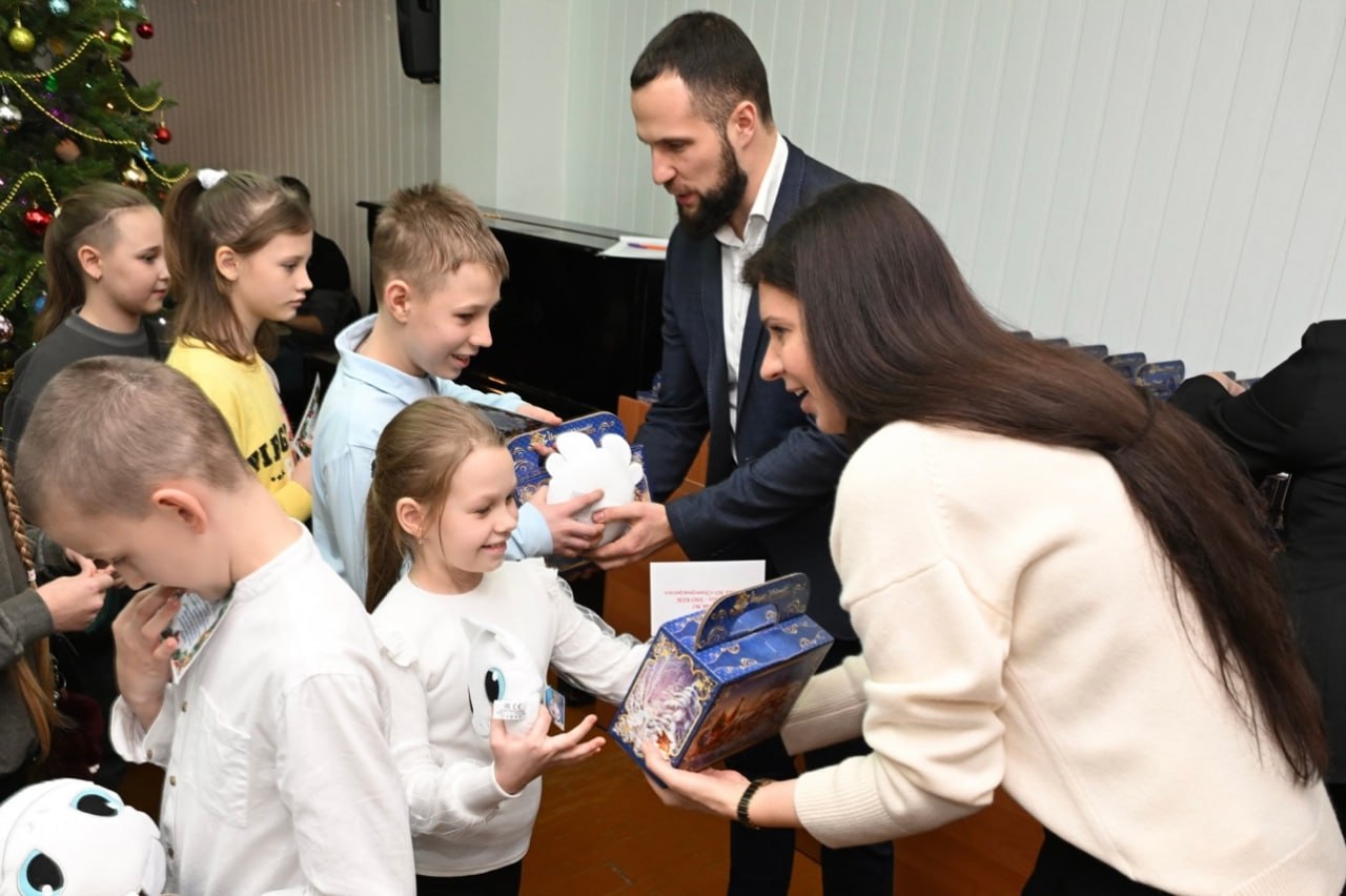 Ирина Малахова и Алексей Золотарёв организовали весёлое новогоднее мероприятие для детей из многодетных семей, семей участников СВО и активистов приграничья, которое прошло в актовом зале завода «Электроагрегат».