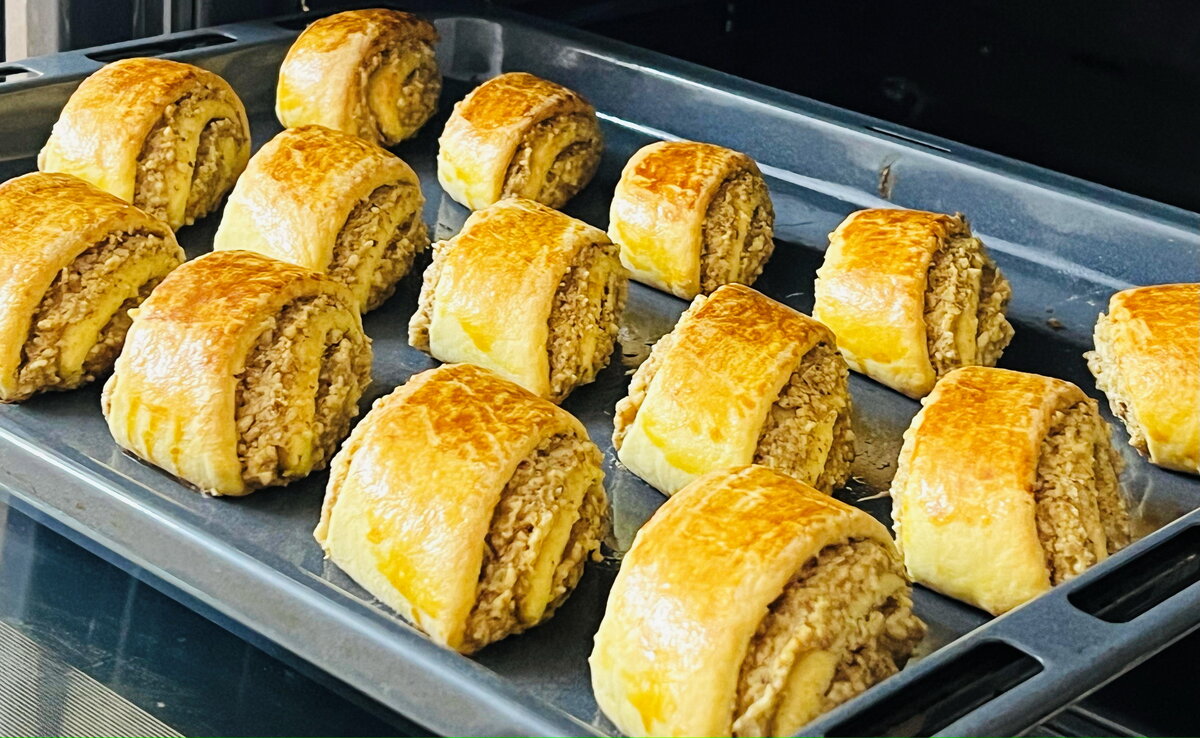 Не забудьте смазать рулеты молоком для золотистой корочки. Выпекайте при температуре 180 градусов около 25 минут – и вкусные рулеты готовы к подаче!