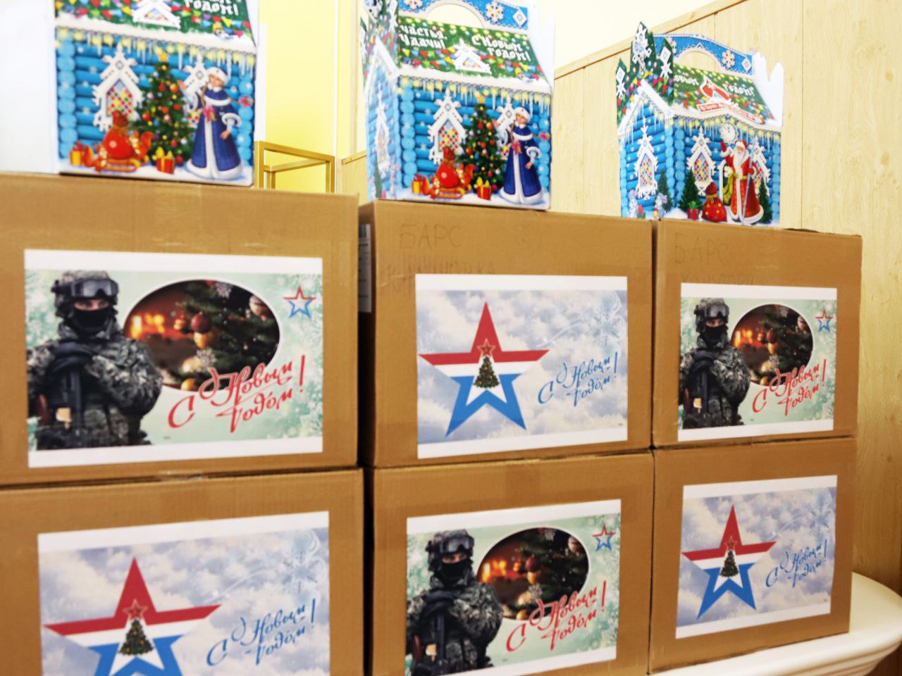 От Администрации района и руководителей сельхозпредприятий вручил новогодние подарки военнослужащим и их детям.