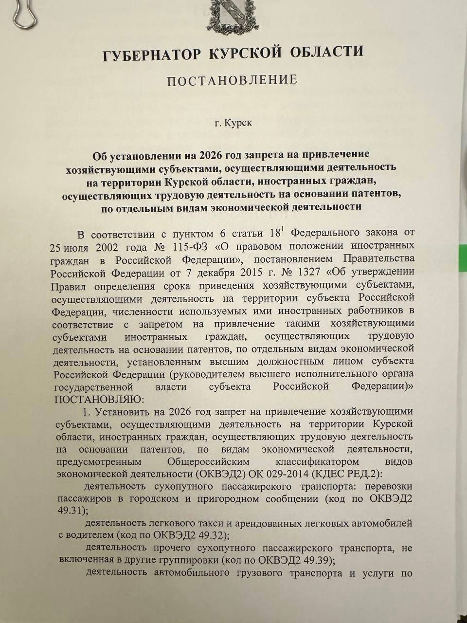В Курской области с 2026 года мигрантам запретят работать в такси и общепите