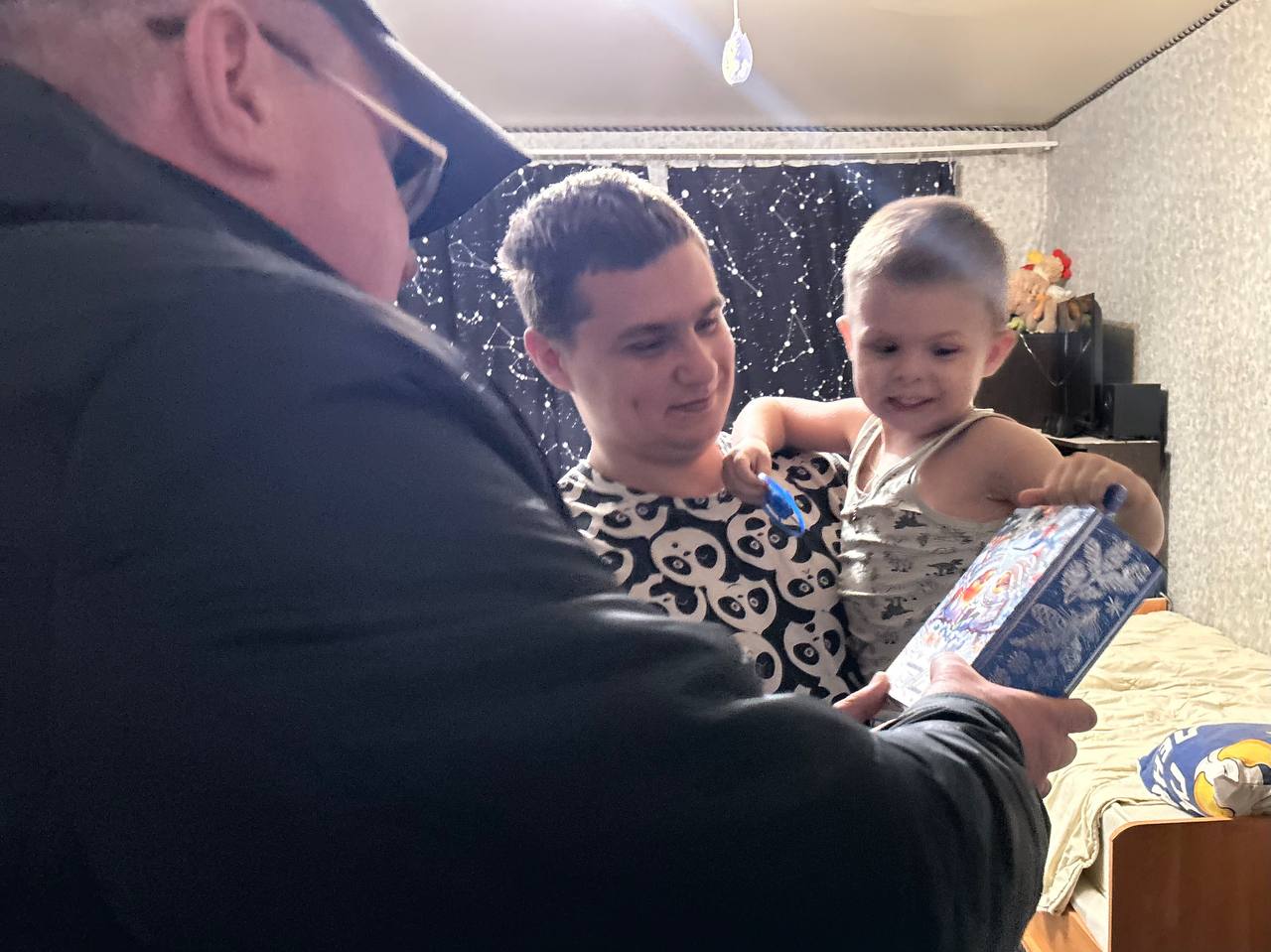Глава администрации Сеймского округа Олег Васильев и и. о. председателя комитета ЖКХ Алексей Шарапов навестили и поздравили с наступающим Новым годом близнецов Назара и Макара