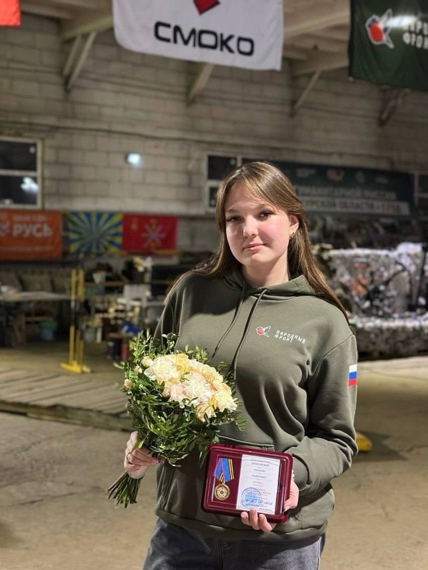 Студентка Курского ГАУ получила награду «80 лет Победы в Великой Отечественной войне 1941-1945 гг.» за активную помощь на гуманитарном складе