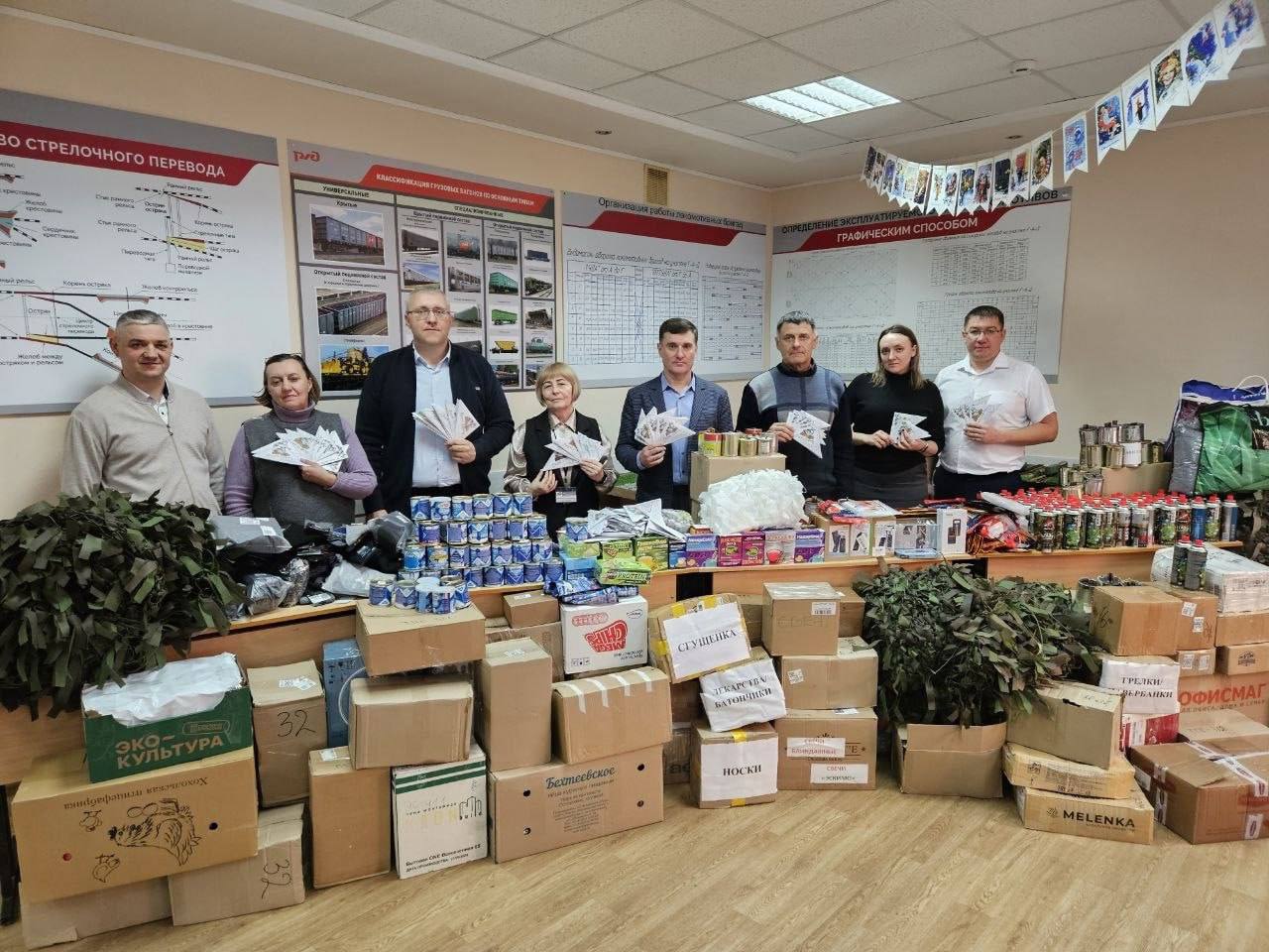 Коллектив Курского железнодорожного техникума лично передал маскировочные сети, письма и гуманитарные посылки нашим солдатам