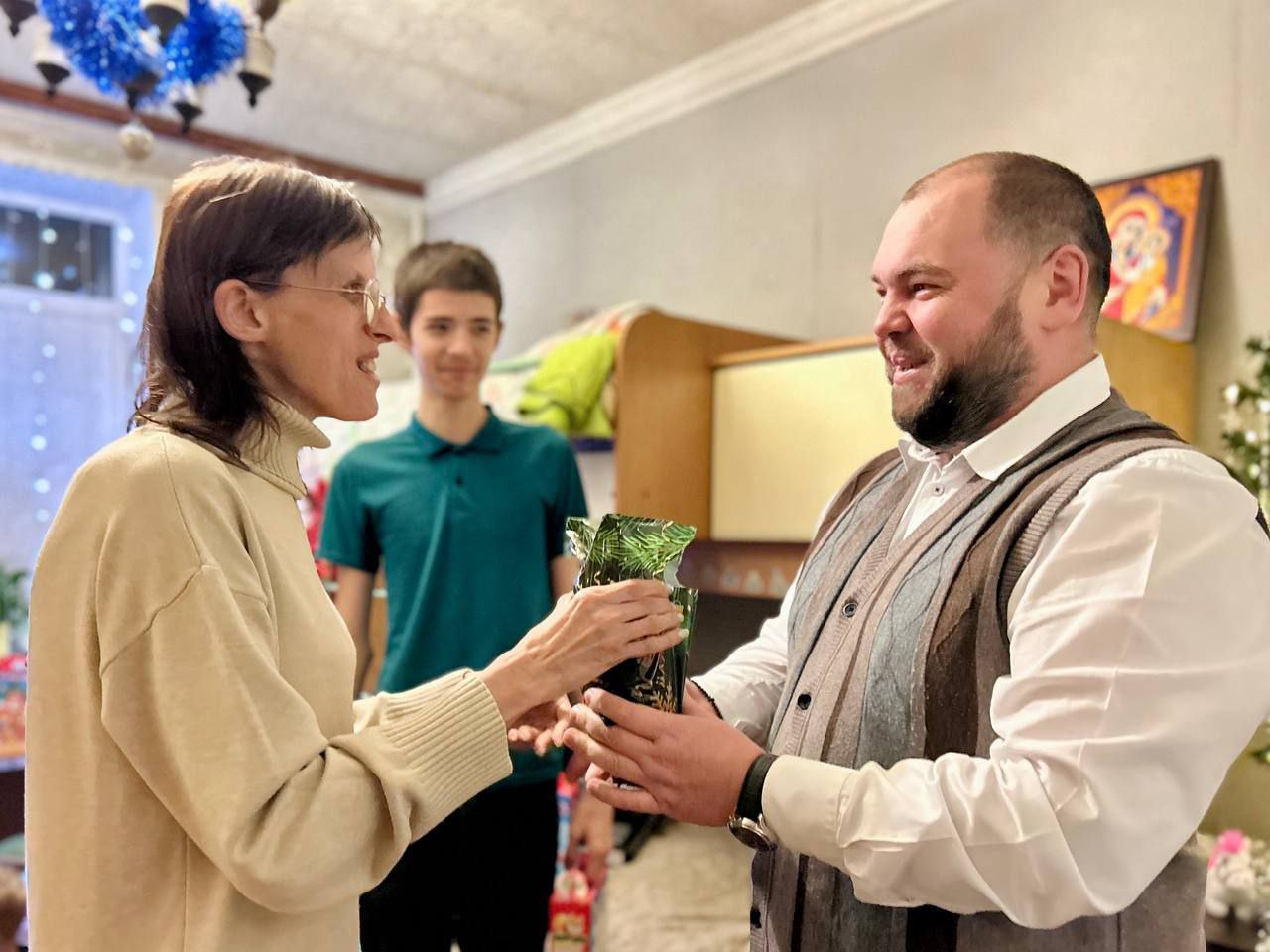 Заместитель главы администрации Андрей Ковалев поздравил многодетную семью Диденко с наступающим Новым годом.