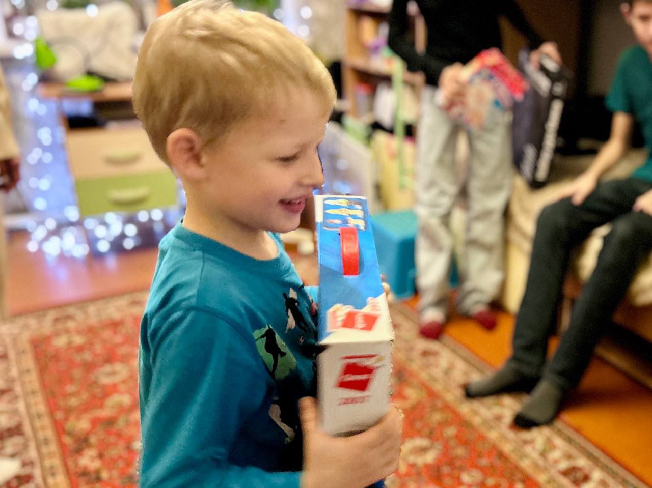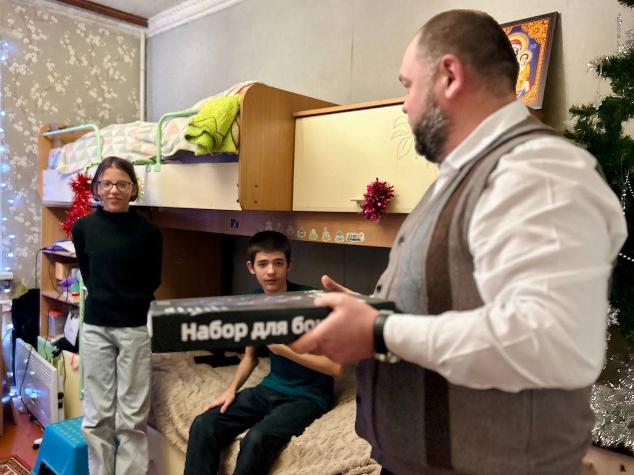 Связываясь с семьей, Андрей Анатольевич узнал, что каждый из детей хочет получить на праздник. В итоге Степан получил пожарную машину, а его брат и сестра — искусственную елку и набор для бокса.