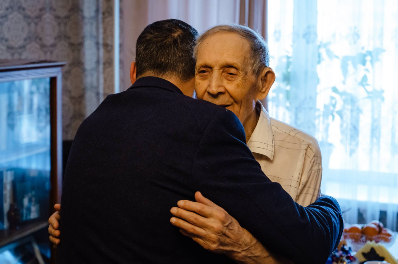 Губернатор Курской области Александр Хинштейн накануне Нового года навестил Почётного гражданина Курска, ветерана Великой Отечественной войны Михаила Жакова, чтобы лично поздравить его с праздником.