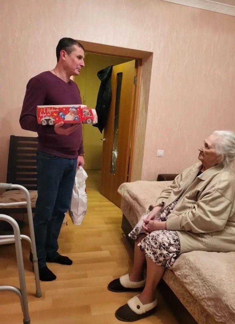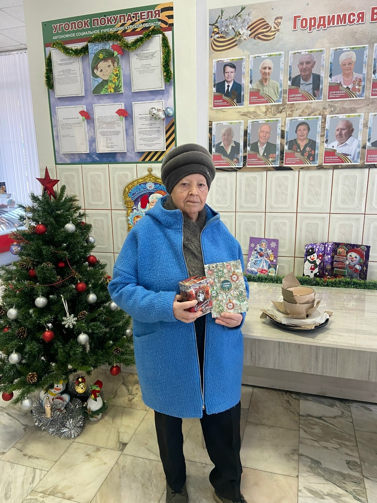 В эти дни сотрудники учреждения «Ветеран» совместно с представителями Курского городского Собрания, волонтерами «Добро.Центр КГУ» и «БИБЛИОдобро», тимуровцами средней образовательной школы № 28 посещают получателей социальных услуг учреждения. Вместе с новогодними подарками и добрыми пожеланиями, дарят праздничное настроение и встречу с Дедом Морозом.