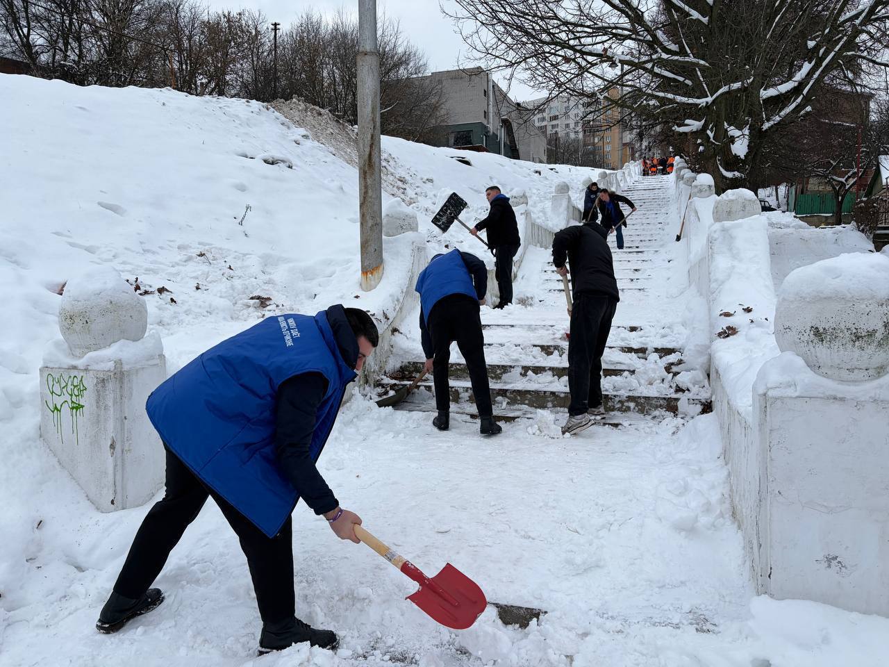 Мэр Курска принял участие в очистке городской лестницы от снега