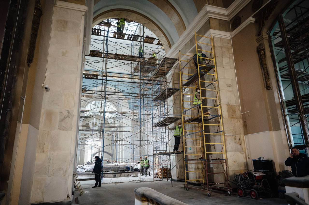 В Курске продолжается реконструкция железнодорожного вокзала. В здании идут реставрационные работы, включая восстановление исторических интерьеров. Залы приводят в порядок с максимальной точностью — уже отобрано более тысячи элементов лепнины, а в помещениях планируют вернуть историческую цветовую гамму.