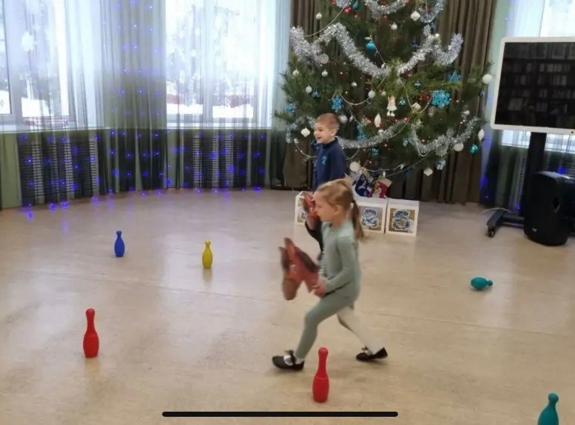 Дети вместе с родителями активно включились в веселые эстафеты: метали «снежки», собирали снеговика, передавали рукавицы Деда Мороза, наряжали ёлку, соревновались в роли лыжников и весело скакали верхом на игрушечных лошадках.