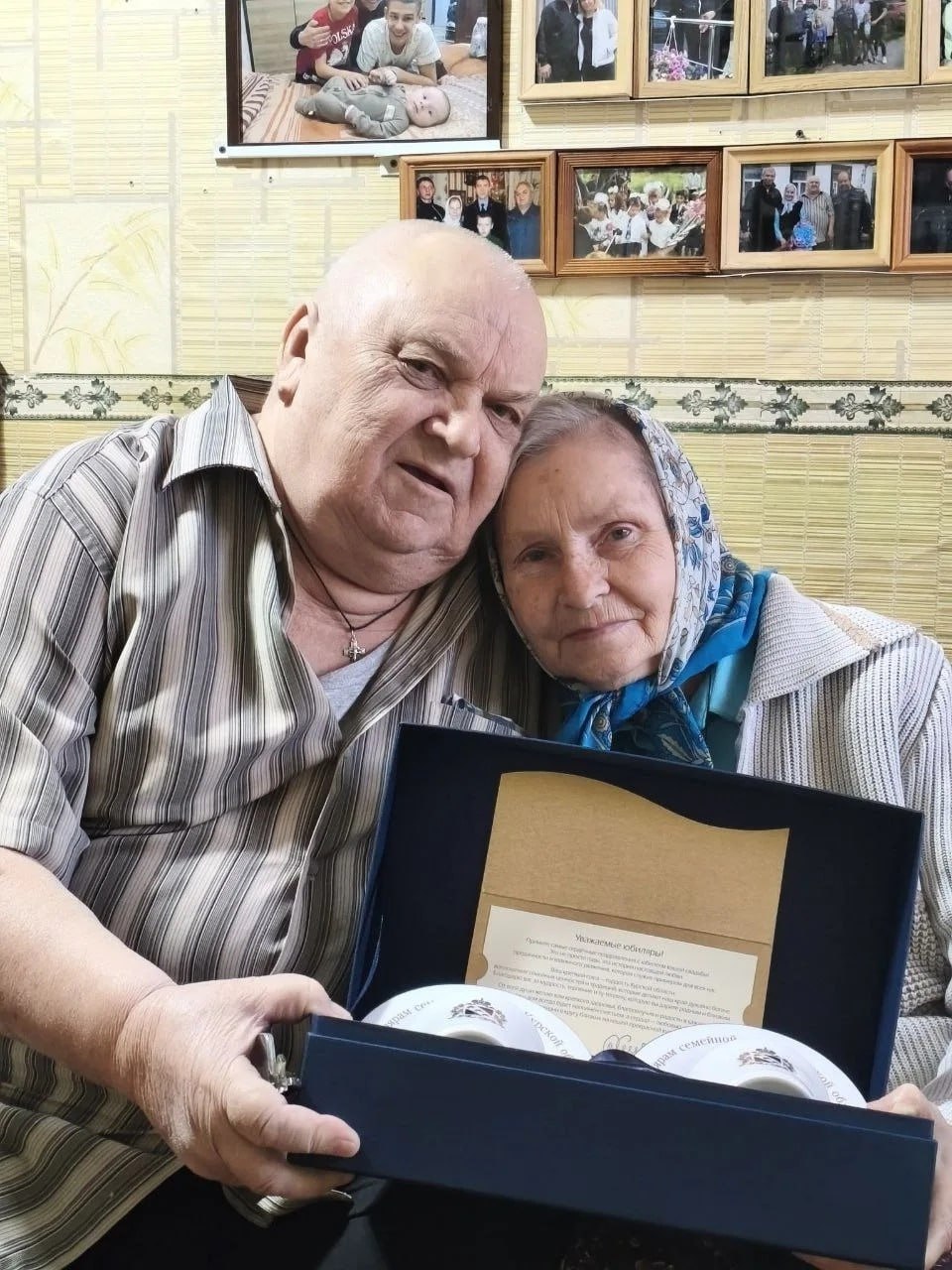 Имена супругов внесли в почётную Летопись счастливых семей Железнодорожного округа Курска. С юбилеем Евгению Григорьевну и Александра Дмитриевича поздравила начальник окружного управления ЗАГС Ольга Федорко, которая вручила семье памятный подарок от губернатора Курской области.