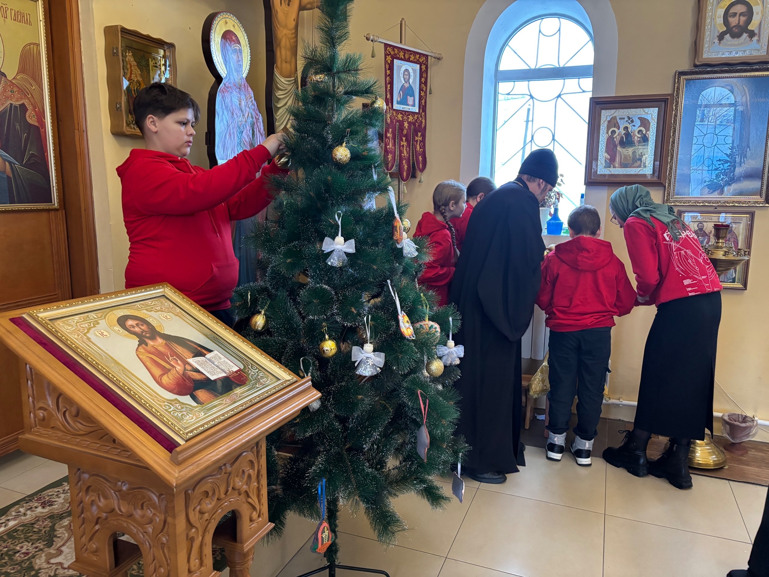 Но самое главное, что совместная работа над украшением елки стала настоящим праздником единения и взаимопонимания. Вместе с настоятелем Храма протоиереем Игорем Ширяевым ребята повесили на ель свои собственные игрушки, а также золотые шары и елочные украшения, созданные руками детей из Воскресной школы.