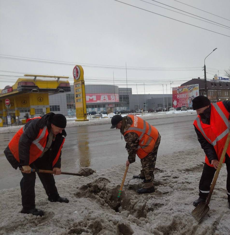 Дорожные службы трудятся круглосуточно, несмотря на праздничный день, - очищают промёрзшие ливнёвки, отметил глава Курска.
