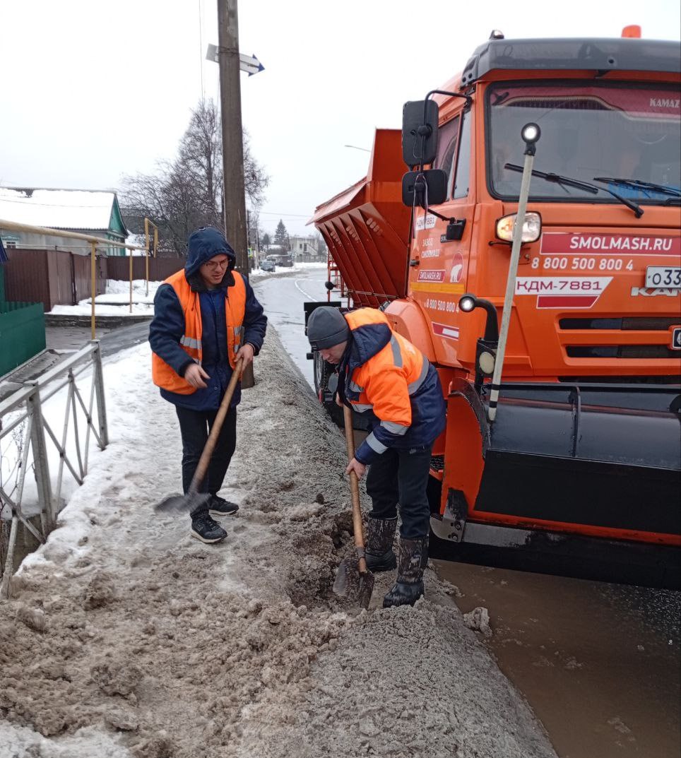 Из-за сложных погодных условий дорожные службы работают в усиленном режиме, сотрудники подрядных организаций часть работ ведут вручную.