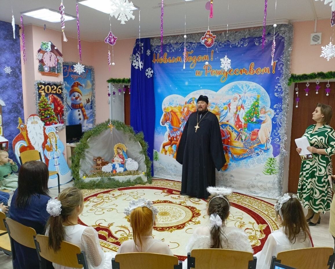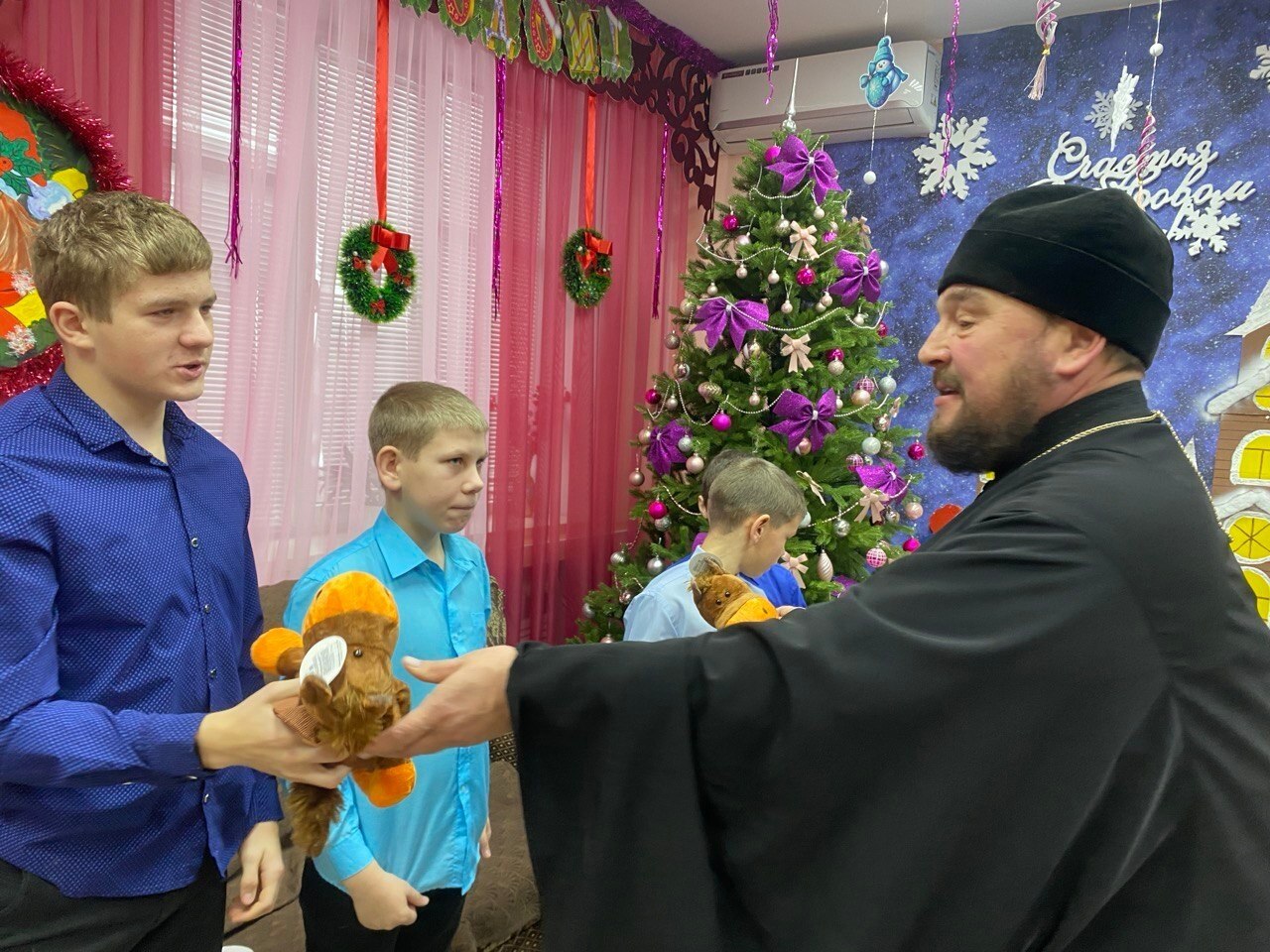 Волшебный праздник Рождества Христова отметили в Черемисиновском центре соцпомощи «Содействие». Воспитанников поздравил почетный гость и добрый друг учреждения - Благочинный Щигровского церковного округа, протоиерей, настоятель Свято-Духовского храма Максим Плохотнюк.