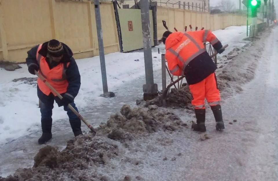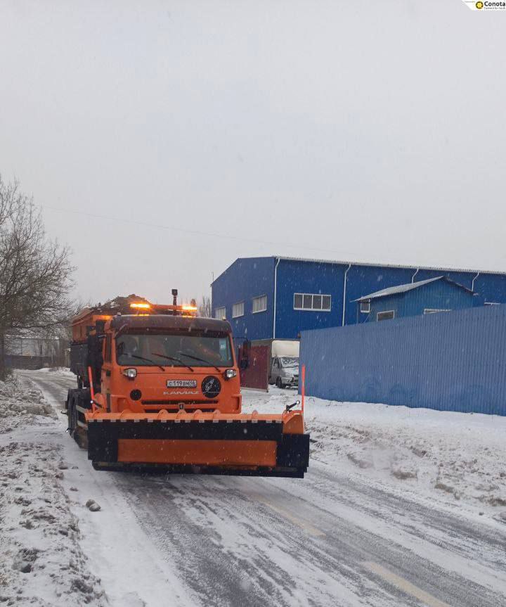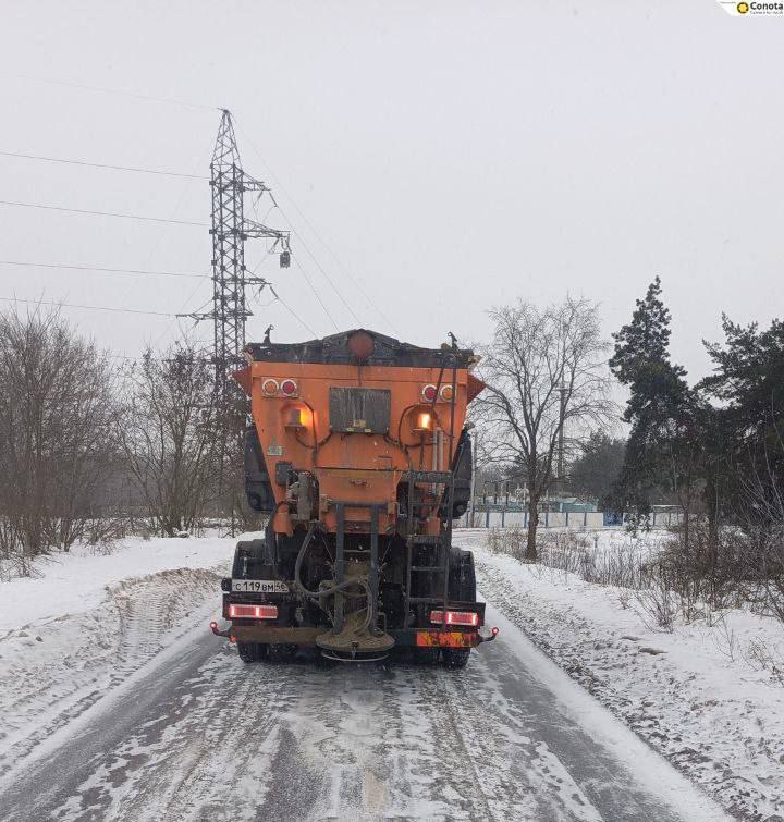 При сильных осадках подрядчики заранее обрабатывают дороги песко-соляной смесью, продолжая эти работы и во время снегопада. Это предотвращает образование снежного наката на проезжей части.