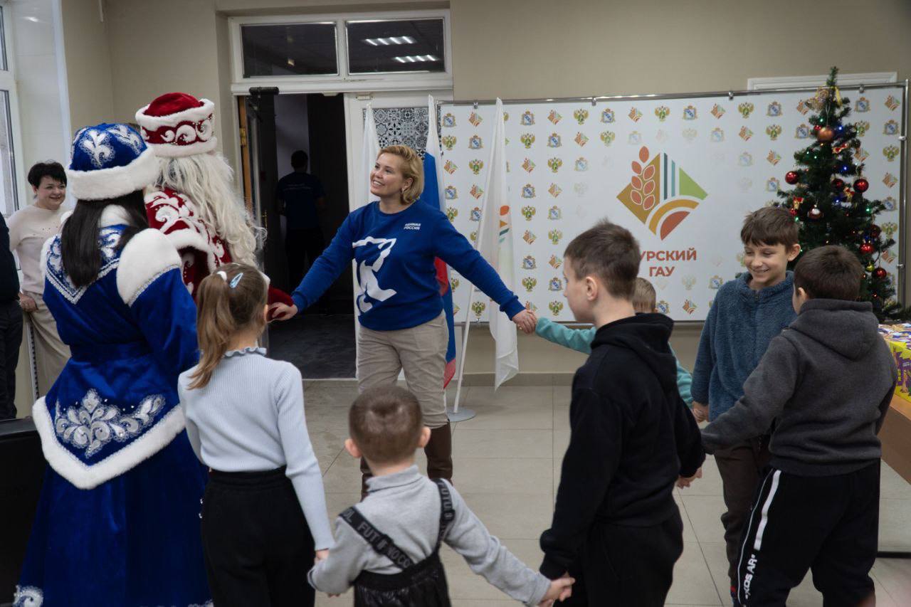 Праздничную атмосферу подарили ребятам из курского приграничья, вынужденным проживать в ПВР на базе Курского ГАУ, депутат Государственной Думы Екатерина Харченко с командой молодогвардейцев.