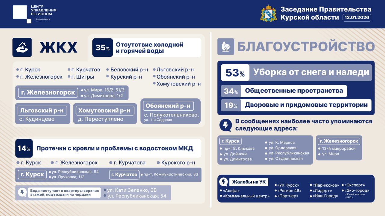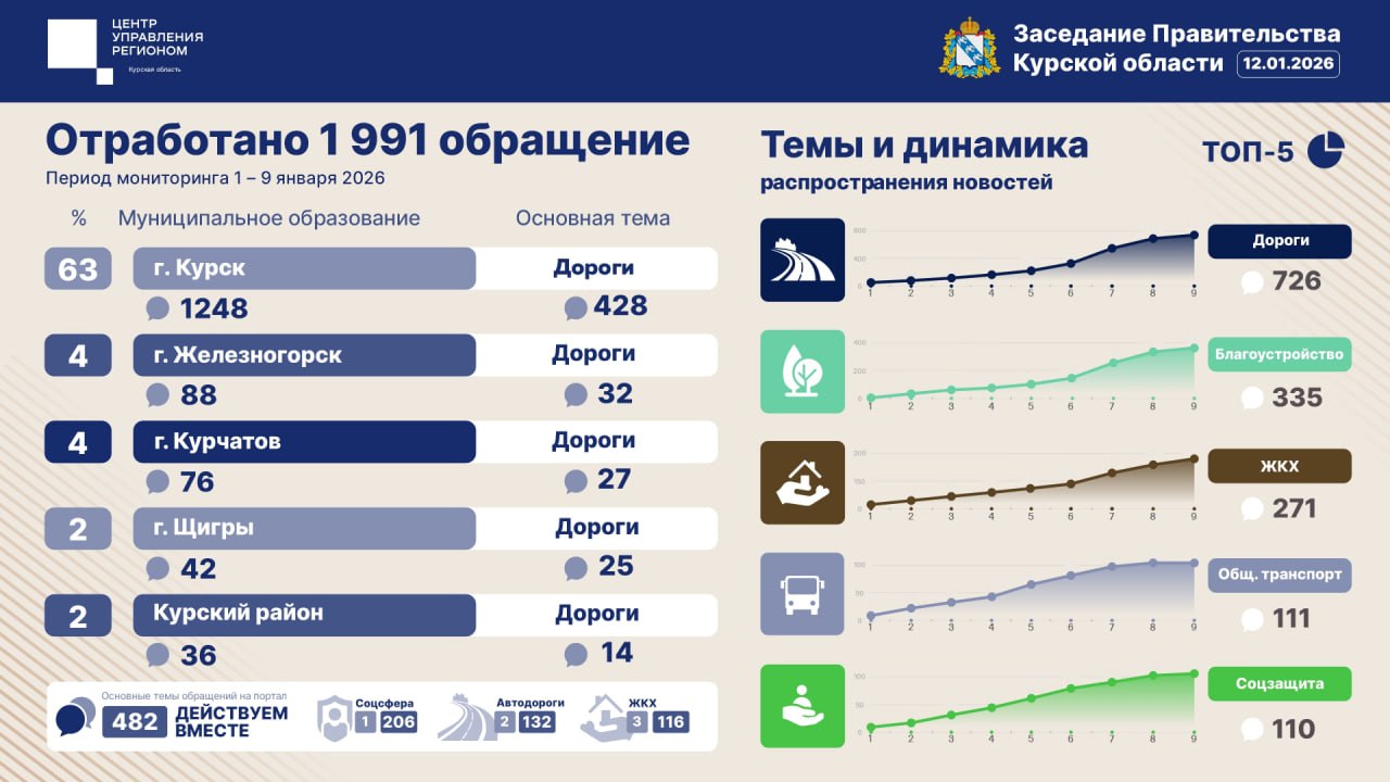 На заседании Правительства Курской области руководитель ЦУР Григорий Цуканов представил анализ ключевых проблем региона, основанный на обратной связи с жителями. Подробнее в инфографике. #ЦУР46