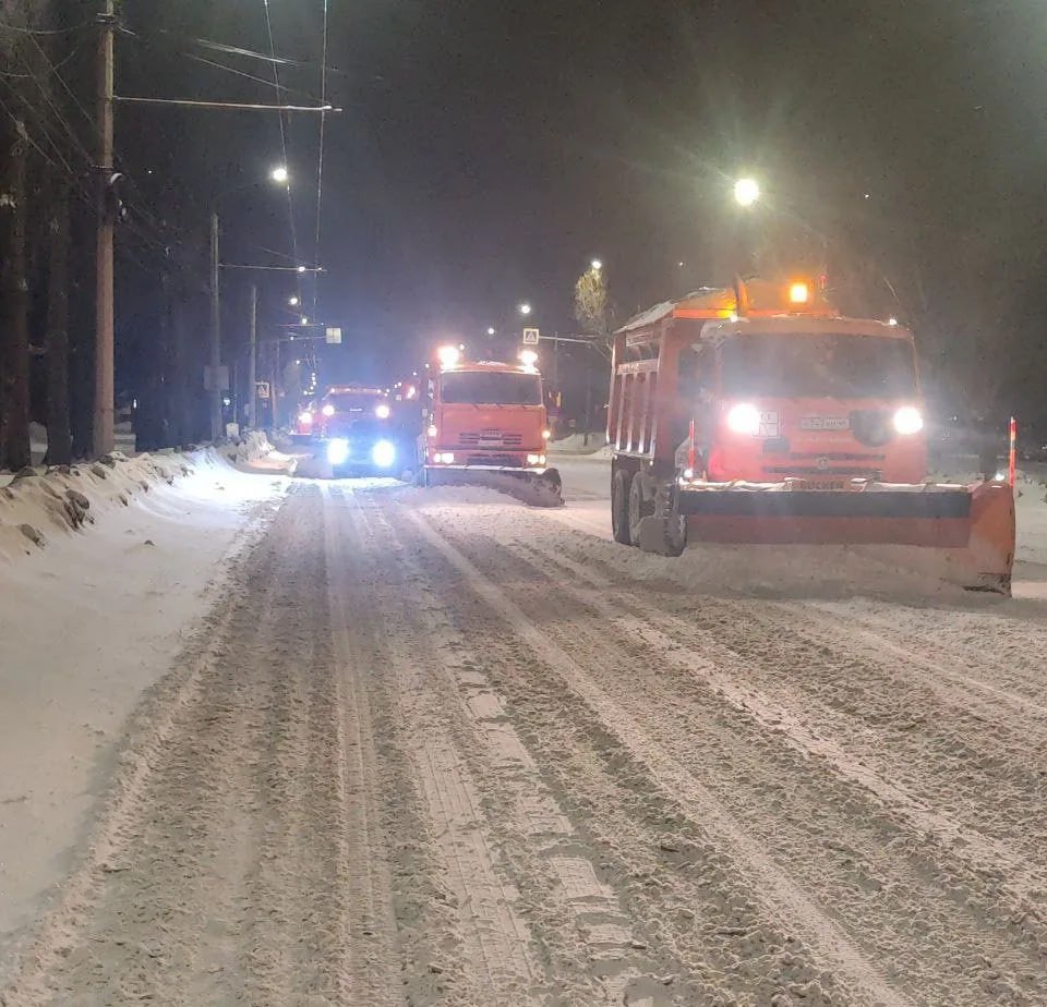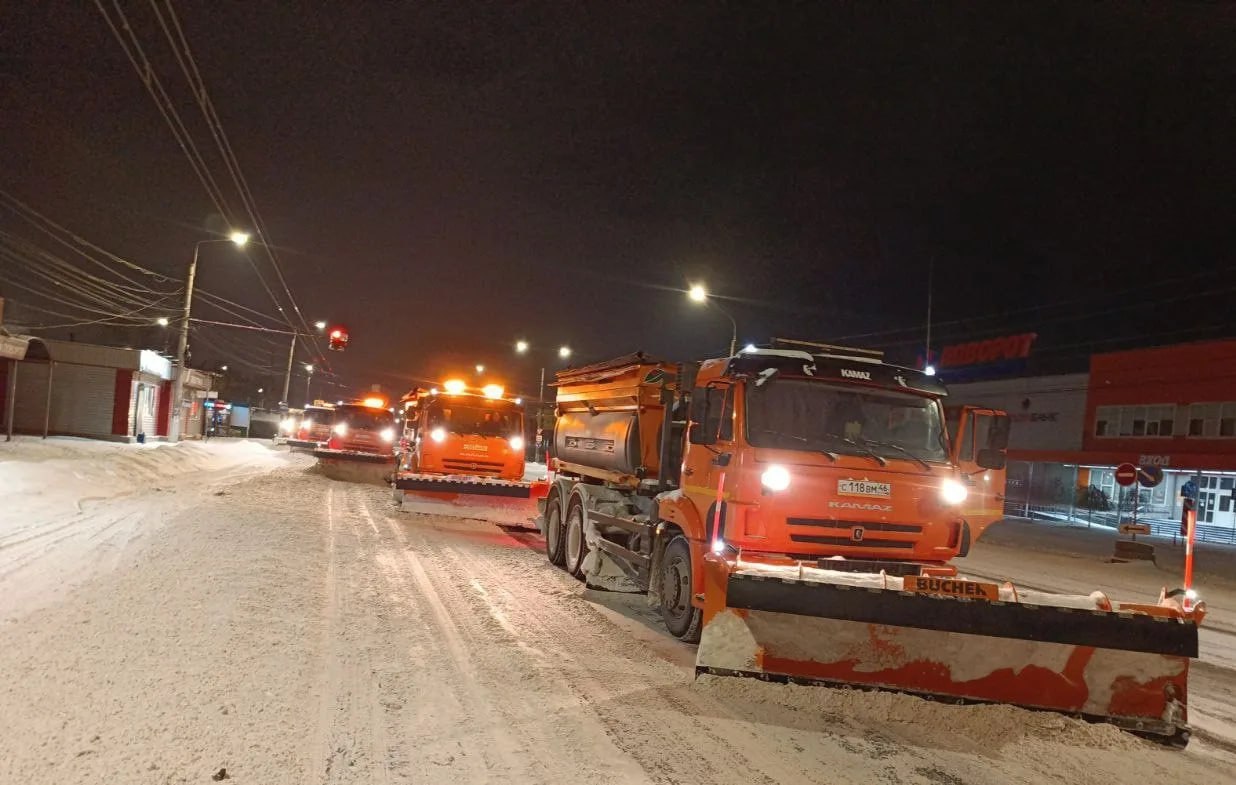Убирают снег на улицах Курска 75 единиц техники