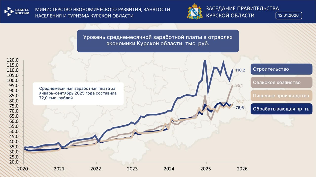 Средняя зарплата в Курской области в 2025 году составила 72 тысячи рублей