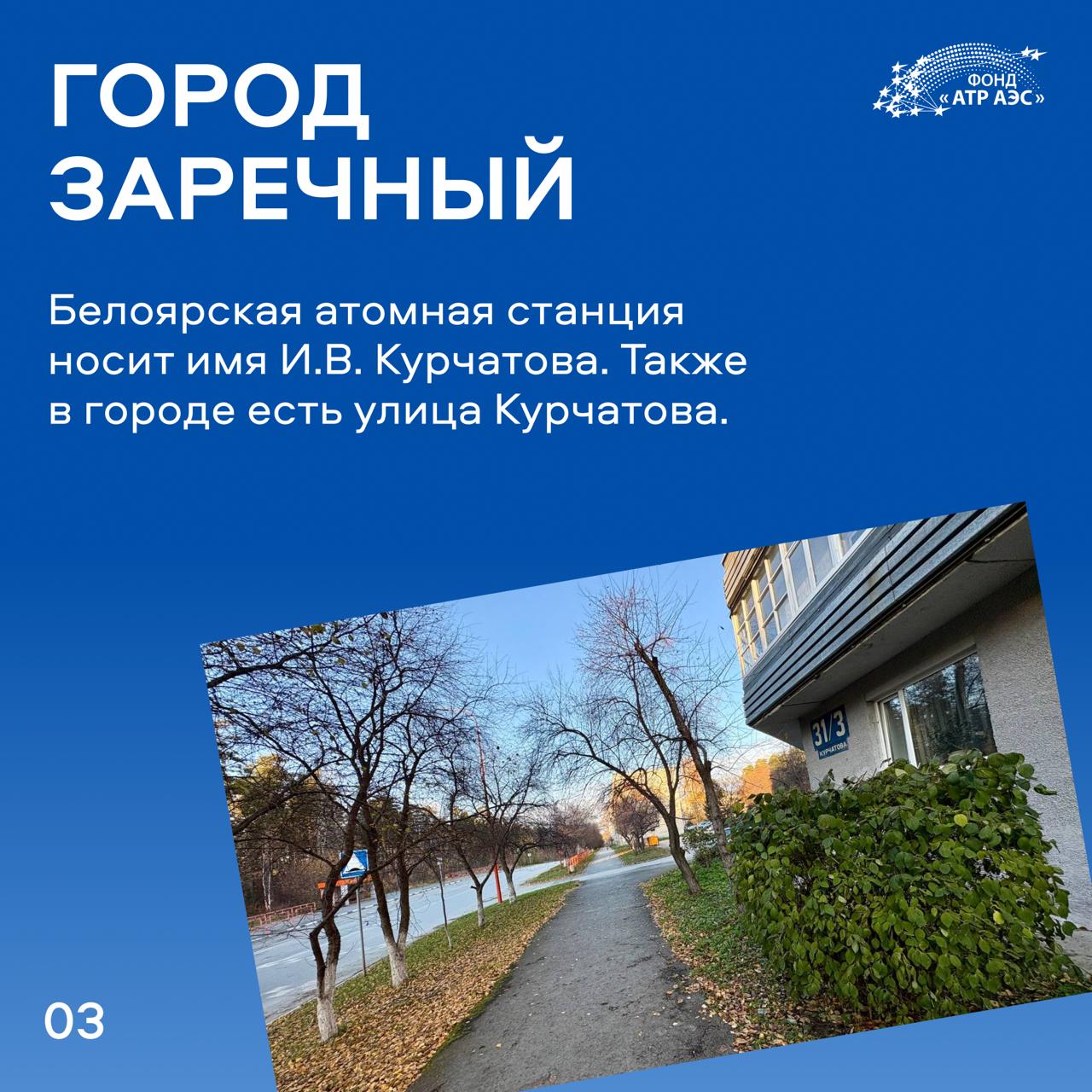 Предлагаем вспомнить, какие городские пространства и объекты в атомных городах сегодня носят имя И.В. Курчатова.