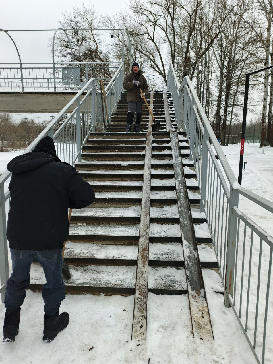 Сотрудники спортивных школ и учреждений культуры помогают в уборке снега в городе.